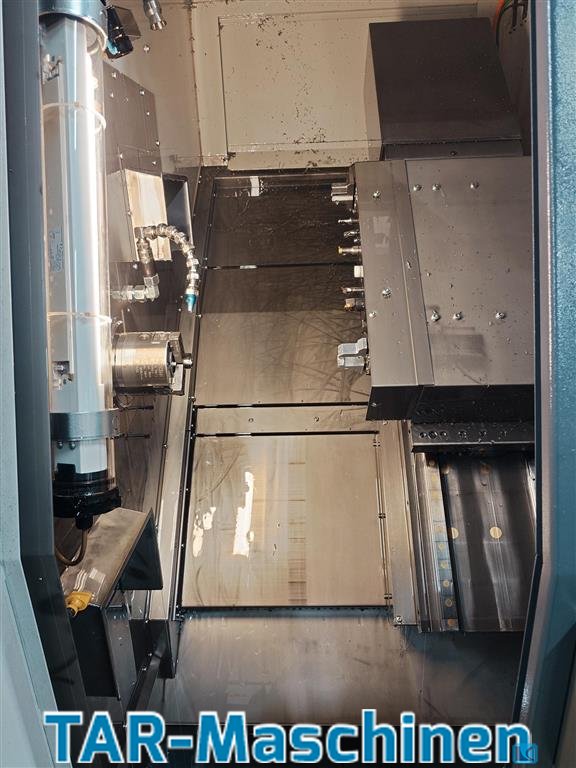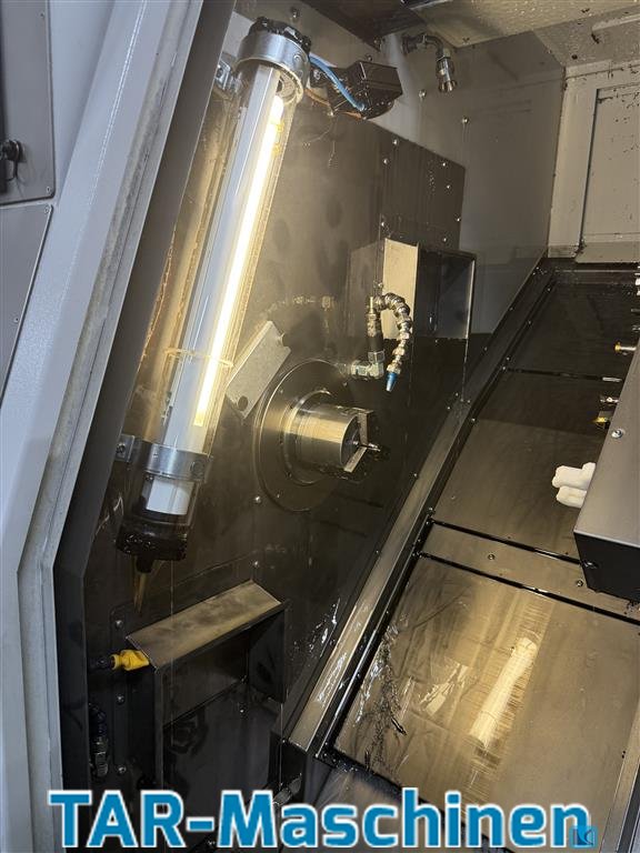 turning diameter:26 mm Article: High-precision CNC lathe with linear cross slide Manufacturer: Benzinger Type: GOFuture B1 Yob: 2015 Machine was only used for reworking, so only light machining work was carried out! Control: Siemens Sinumerik 840Dsl Main spindle: maintenance-free motor spindle Bar capacity: D26mm Chip processing container with coolant pump: 30l/min at 5bar Loading and unloading device type IB Additional gripper system for placing the workpieces in the correct position on the unloading conveyor Coaxial valve for coolant to the linear tools (3 pieces) Internal clamping device C-axis main spindle for digital control incl. Transmit function Adjusting microscope 16x magnification Coolant supply through the clamping cylinder of the spindle, sealing air, Speed increase of the motor spindle to 8,0000 rpm Nordmann tool monitoring Profibus master interface Hinged belt conveyor Kno ...