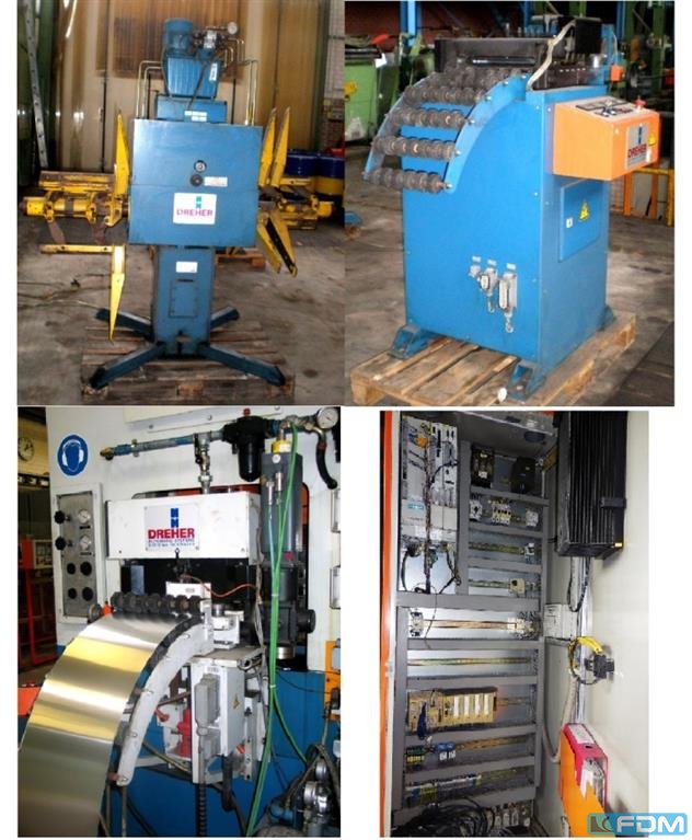 sheet width - max.: 0800 mm coil weight: 3,50 t coil internal dia.: 460 -530 mm coil-outside of decoiler: 1400 mm total power requirement: 2,2 kW weight of the machine ca.: 1,95 t dimensions of the machine ca.: 1,60 x 2,20 x 2,60 m with hydraulic auxiliary drive, pneumatic lag brake, hydraulic centralized expansion, hydraulic snubber roll As is, without commissioning / without further work, Design as described in the technical data sheet The data for this ad was created with ModulMWS - the software solution of LogoTech oHG.