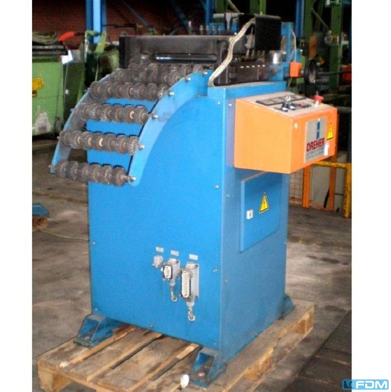 sheet width: 0500 mm coil outside dia.: 1400 mm weight max. in kg: 4000 kg plate thickness: 0,80 - 3,60 mm diam. of the rolls ca.: 80 mm feed rolls: 2 nomb. of straightening rolls: 7 exit pinch rolls: 2 speed: 5-30 m/min range of expansion ca.: 445 - 530 mm expansion: manuell total power requirement: kW weight of the machine ca.: t dimensions of the machine ca.: m Control conversion to SIEMENS S7 in 2012 - pneumatic pressure roller on the side - pneumatically ventilated feed roller - Straightening rollers manually adjustable - lateral belt guide at the inlet - Large roller basket at the outlet - Ultrasonic transmitter for loop control - Roller feed type 1125 D - Bandwidth max. 510 mm - Band thickness max. 6 mm with full width 5.50 mm - Roll diameter 125mm - Feed speed: max. 100 m/min. - pneumatically ventilated top roller - Lateral tape guide with digital display - Inlet roller basket ...