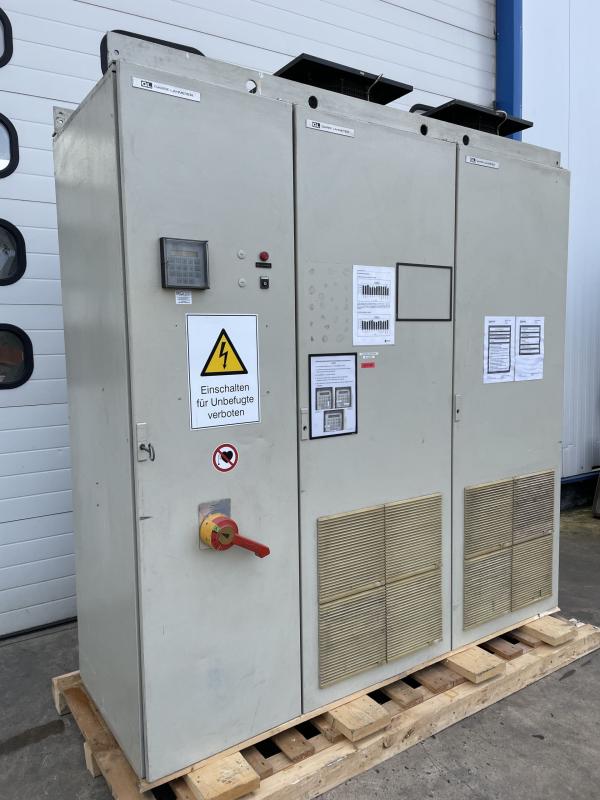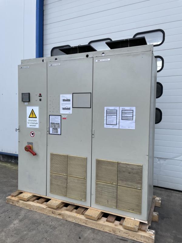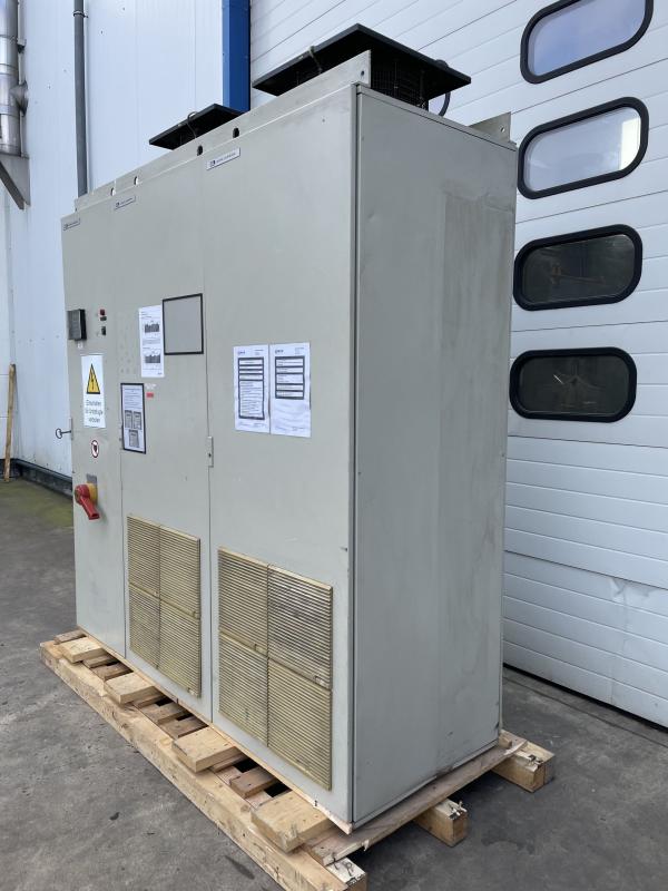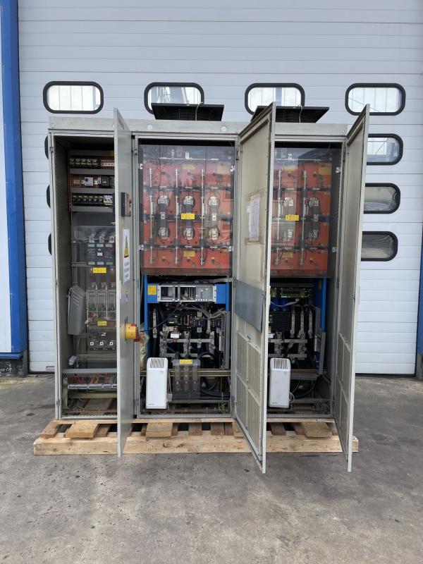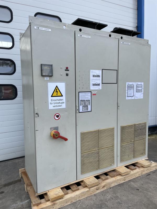 Statyczna przetwornica częstotliwościProducent: GARBE LAHMEYER & Co. AGTyp SU3760.2aFZ231Rok produkcji: 1989Fabr. Nr: A2K 60229 0001Moc nominalna 500 kVAStromart DNonapięcie trawienia 380 VoltCzęstotliwość wejściowa 50 HzPrąd wejściowy 760 Amp.Typ zasilania Wejście 760 Amp.Napięcie wyjściowe 380 VoltCzęstotliwość wyjściowa 50 HzPrąd wyjściowy 760 Amp.Typ moc wyjściowa 760 Amp.- Jednostka sterująca GARBE LAHMEYER Typ AEB 60Wymiary szafy (szer. x wys. x gł.) 2250 x 800/900 x 2550 mmWymiary transportowe (szer. x wys. x gł.) 2430 x