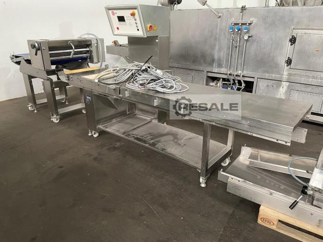 -Stół do krojenia ciasta Producent: A. Fritsch GmbH & Co KG -Typ: FT250/700 -400 woltów -z 2 rolkami tnącymi -mobilny na kółkach -400 woltów -Wymiary zewnętrzne ok.: 260x88cm i wysokość 110cm