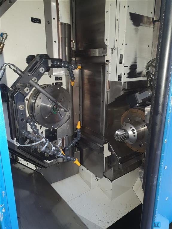 ratio of transmission: 10:1 min. number of teeth: 3 max. number of teeth: 200 range of tooth size: 20 mm tooth width max.: 58 mm diameter of tools min: 69,85 mm diameter of tools max.: 230 mm x-axis: 325 mm y-axis: 350 mm z-axis: 470 mm work piece table - Ø: 212,71 mm b-axis: + 90,1 / - 1 ° Control: SIN 840 D SIEMENS total power requirement: 75 kW weight of the machine ca.: 10.000 Kg dimensions of the machine ca.: 6,10 x 4,40 x 3,30 m WAGURI with EWAB load cell built in 2012 (Linear loader) no coolant filter system available The data for this ad was created with ModulMWS - the software solution of LogoTech oHG.