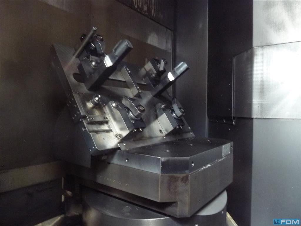 x-travel:630 mm y-travel:630 mm z-travel:500 mm number of spindle speeds:0 - 15000 spindle motor:32 kW size of pallet:500 x 500 mm b-axis:36000 x 0,001 ° no. of workpieces in the magazine:61 Stück tool taper:HSK 63 weight of the machine ca.:15 t Single-Spindle Mechanical processing cylinder head VR6