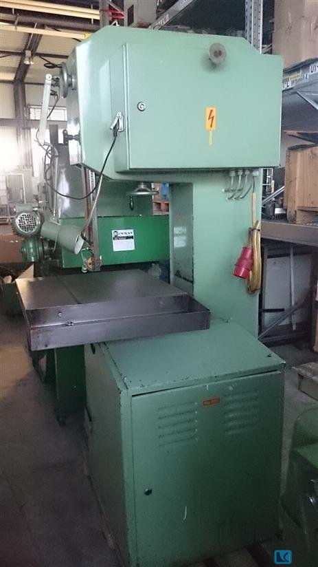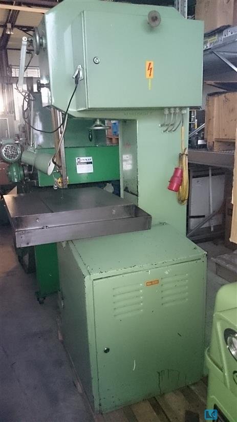 roll diameter: 420 mm throat: 405 mm workpiece height: 380 mm cutting speed: 16 - 2200 m/min table surface area: 615 x 615 mm saw band length: 3450/3650x6-20x0,9 mm work height max.: 955 mm voltage: 380 V total power requirement: 3.0 kW weight of the machine ca.: 470 kg dimensions of the machine ca.: 1250 x 1000 x 2100 mm From a training workshop Good condition () Features: - Robust, vertical band saw machine - Frequency-controlled, infinitely variable belt drive - Belt guide height adjustment with hand wheel - IDEAL belt welding system, with shears and grinding motor - Swivel table 15°/45° - Machine base - Swiveling machine lamp The data for this ad was created with ModulMWS - the software solution of LogoTech oHG.