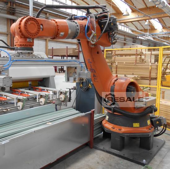 Układanie taśm w stosy Robot przemysłowy KUKA z urządzeniem / ramieniem chwytaka do układania listew Model robota: KUKA KR 150-2 Data budowy: 2007