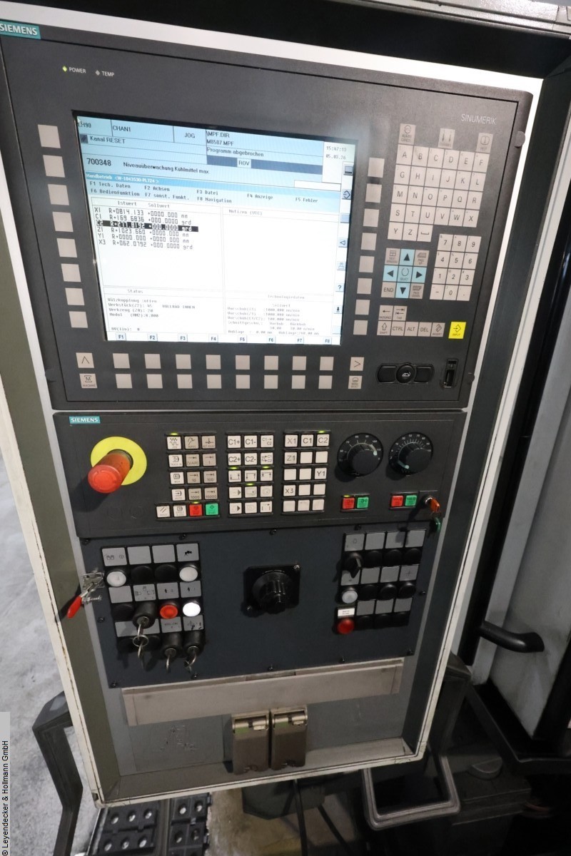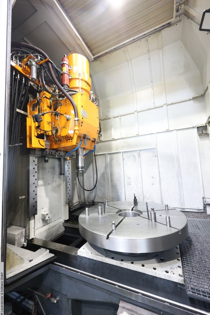max. wheel diameter: 3000 mm gear width: 500 mm max. module: 25 / 40 spindle turning speed range: 250 U/min feed speeds: max. 4000 mm/min faceplate diameter: 2000 mm table bore diameter: 700 mm table turning speeds: 51 U/min power capacity - milling spindle: 53 kW drive motor for milling spindle: - kW axial adjustment: 1200 mm milling head swivable ca.: +/- 45 ° control: Siemens 840D total power requirement: - kW weight of the machine ca.: 55 t - CNC Control Siemens 840D - Internal Hob Head IFK - External Hob Head The data for this ad was created with ModulMWS - the software solution of LogoTech oHG.