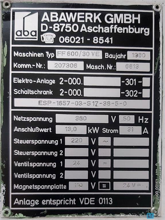 Szlifierka do płaszczyzn Aba FF450/30 BJ 1980
