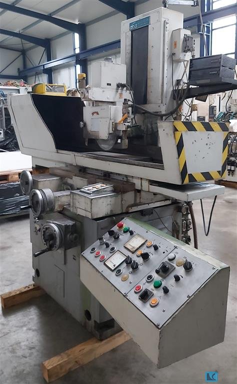 Szlifierka powierzchniowa. Uchwyt magnetyczny o przekątnej 550x250mm. Przesuw stołu: 700mm. Powierzchnia grindu: 600x350mm. Max. wysokość: 375 mm. Przesuw krzyżny: 300mm. Koło: 350x127x50 / 300x127x100 Waga: 2900kg.