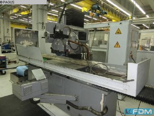 Specyfikacje: Obszary pracy: Oś X: 1870 mm Oś Y: 400 mm Oś Z: 560 mm Prędkość osi C: 3000 1/min Maksymalna powierzchnia szlifowania: 1700 x 620 mm Bez komody stołowej: 1500 x 620 mm Maszyna do przebierania stołów, koło diamentowe: ø 110 mm Średnica tarczy szlifierskiej: 400 mm Maksymalna szerokość: 100 mm Średnica cylindra szlifierskiego: 127 mm Odległość między stołem a wrzecionem: 800 mm Wysokość stołu: 900 mm Obciążenie stołowe, maks.: 2200 kg Masa, ok: 12 000 kg Sprzęt: - Sterowanie Siemens SINUMERIK 840D, panel sterowania OPO12 -System - Płytka zaciskowa elektromagnetyczna - Enkapsulacja w pełnej przestrzeni -Centralne smarowanie - Usuwanie mgły - System zaciskowy dla autom. Wymiana płyty - Urządzenie chłodzące - Chłodzenie wody chłodzącej