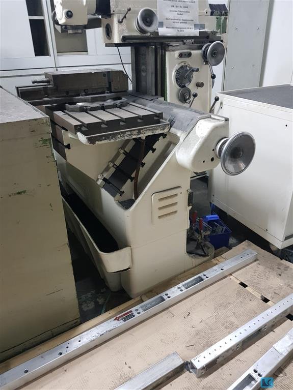 Pokrywa FP 1 w bardzo ładnym stanie x-ścieżka: 300 mm y-way: 150 mm z-way: 340 mm Powierzchnia mocowania: 600 x 210 mm Rowki T: 5 T - szerokość szczeliny: 12 mm Zakres prędkości - pionowy: 250 - 2000 obr./min Zakres prędkości - poziomy: 40 - 315 obr./min Poziomy prędkości robocze wrzeciono: 8 Zakres posuwu: 10 - 500 mm/min Poziomy paszy: 8 Skok pinolene: 60 mm Uchwyt wrzeciona: SK 40 Wyświetlacz cyfrowy Z-502 Całkowite zapotrzebowanie na moc: 1,7 kW Masa maszyny ok.: 0,8 t Zapotrzebowanie na przestrzeń ok.: 0,90 x 1,10 x 1,55 m Uniwersalna frezarka narzędziowa w dobrym stanie, pionowa głowica obrotowa +/- 90 włącznie z wiertnicą z skokiem 60 mm, wrzeciono poziome, automatyczne podawanie w kierunku X i Z, uniwersalny stół obrotowy, zakres toczenia i przechylania+/- 30, zakres obrotu+/- 90, oddzielna szafka sterownicza + przełącznik główny