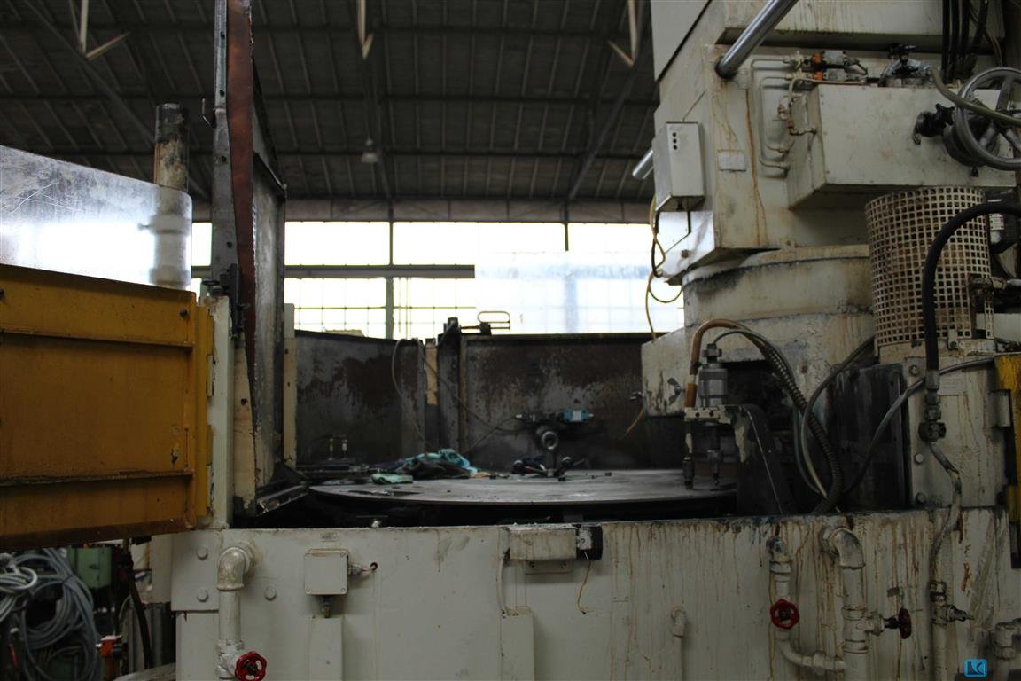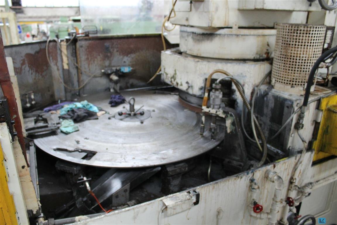 DISKUS DDS 300 RPD jest remontowany w warsztacie. Maszyna została całkowicie zdemontowana, wyczyszczona, naprawiona i przetestowana funkcjonalnie. Przeprowadzono remont łożyska wrzeciona i napędu stołu obrotowego. Specyfikacje Pionowy zespół wrzeciona szlifierskiego Średnica obrabianego przedmiotu do 30 mm Max. wysokość obrabianego elementu 10/20 mm Średnica ściernicy 300 mm Prędkość obrotowa ściernicy 35 m/s Posuw obrabianego przedmiotu od 1,5 do 15 m/min Moc napędowa silnika ściernicy 2 x 22 kW Całkowita moc napędowego ok. 50 kW Masa maszyny ok. 4,5 t Całkowite zapotrzebowanie na miejsce ok. dł. x szer. x wys. 3,3 x 2,6 x 2,6 m Wyposażony przez producenta do szlifowania tarczami CBN. Dostępna dokumentacja maszyny. Maszynę można obejrzeć po wcześniejszym uzgodnieniu w naszej fabryce w Krefeld.