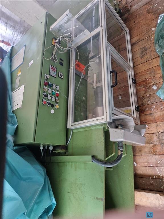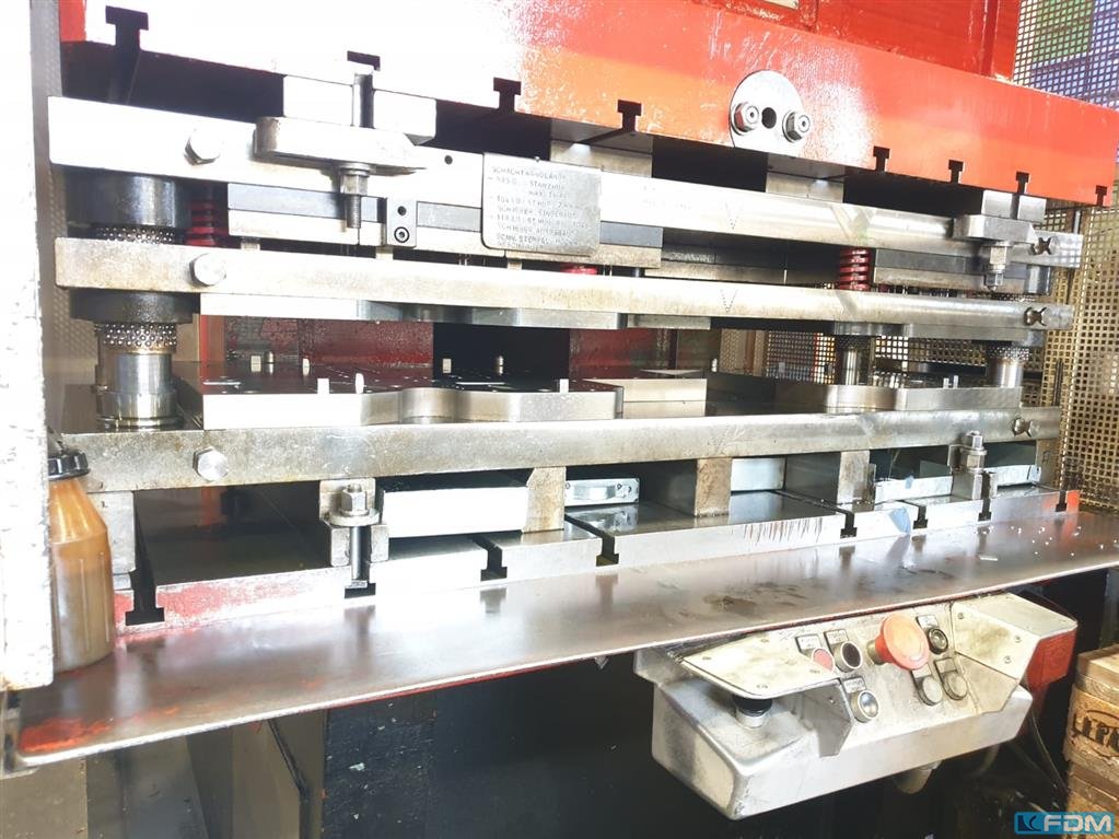 Dane techniczne: - Siła ściskana 100 t - Przedłużenie 320 mm - Szerokość w podstawce poniżej prowadnicy 400 mm - Rozmiar tabeli ok. 850 x 610 mm - Otwór biegunkowy w stole wyruszył 335 / 300 mm - grubość płyty zaciskowej stołu 90 mm - gr. Wysokość montażu około 300 mm - Powierzchnia wtyczki 600 x 335 mm - Regulacja wysokości wtyczki 80 mm - Regulacja skoku 10 - 130 mm - Skok spalin w tłuczku 32 mm - Liczba skoków ciągły przebieg ok. 56 /min - Napęd 400 V / 11 kW - Zapotrzebowanie na przestrzeń ok. W 1900 x H 2800 x D 2200 mm - Waga ok. 9000 kg z: - urządzenie m.in. - Sprzęgło hneumatycznie sterowane pneumatycznie - LUTEX Dodatkowy układ hamulcowy - Centralne smarowanie