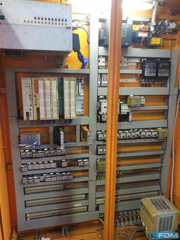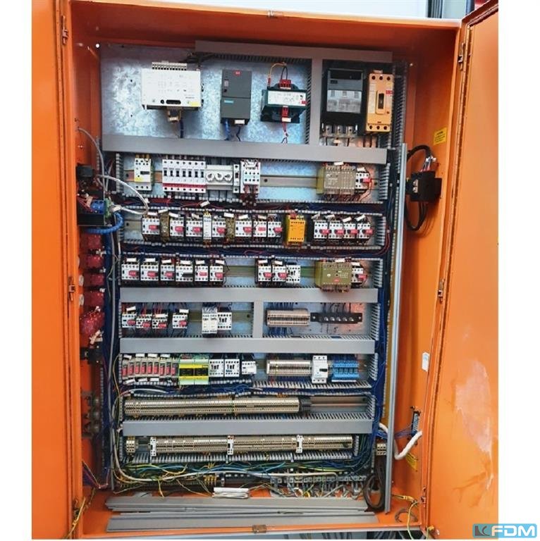 Krupp PST-A 160 prasa transferowa zbudowana w 1980 roku. Dane techniczne prasy KRUPP PST-A 160: - ciśnienie nominalne: 160 ton - stopień siły cięcia 1: 400 KN - siła między stojakami: 1200 KN - liczba etapów roboczych, w tym etap cięcia: 11 - odległość między stojakami: 200 mm - skok suwaka: 210 mm - głębokość rysunku: 70 mm - zakres skoków, nieskończenie regulowany: 15-75 / min. - zakres produkcji skoków z powtarzalnością jego ustawienia: 25-75 / min. - liczba ruchów aktuacyjnych: 15-25 / min. - użyteczny zasób pracy do skoku w zakresie 25-75 uderzeń na minutę. : 20 000 J - maksymalne obciążenie na jednym etapie: 500 KN - maksymalne obciążenie jednego kroku za pomocą płytek: 630 KN - maksymalna szerokość taśmy: około 340 mm - maksymalna średnica cięcia: 120 mm - minimalna średnica wzoru: 30 mm - odległość między stojakami: 2 ...