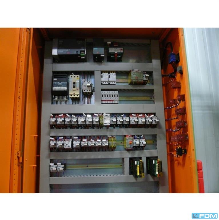 CNC - sterowany prasę krawędziową o wysokości montażu 700 mm + skok pręta prasy 400 mm - prasa krawędziowa doskonałej jakości - używana maszyna zbudowana w 2006 roku - stan bardzo dobry, siła nacisku 3500 kN, największa długość zginania 4200 mm, przejście między bocznymi stoiskami 3550 mm, przedłużenie z boku wynosi 500 mm, maksymalna wysokość montażu 700 mm, skok belki do 400 mm, prędkość wiązki prasy 200/180 mm/sekundę, moc napędowa 15 kW, wymiary ok. 5 m x 2,3 m x H 3,45 m, waga 25 000 kg. Wyposażenie: 8 osi CNC Y1/Y2 (pręty prasowe w górę i w dół) - X1 + X2 (bloki stopu do tyłu i do przodu 750 mm) - R1 + R2 (bloki tylnego zatrzymania w górę i w dół do 200 mm) - Z1 + Z2 (regulacja szerokości bloków stopu 3500 mm), DELEM® CNC - sterowanie kolorową grafiką i ekranem 15" Monitorowanie linii gięcia wiązki laserowej, CNC – kontrolowane dyn ...