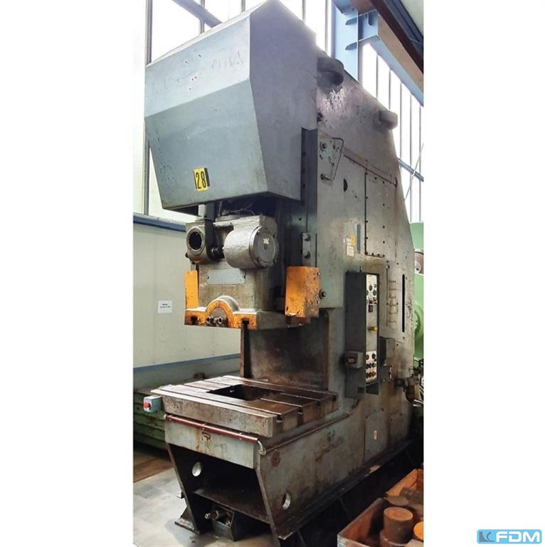 Dane techniczne: - Siła ściskana 100 t - Przedłużenie 320 mm - Szerokość w podstawce poniżej prowadnicy 400 mm - Rozmiar tabeli ok. 850 x 610 mm - Otwór biegunkowy w stole wyruszył 335 / 300 mm - grubość płyty zaciskowej stołu 90 mm - gr. Wysokość montażu około 300 mm - Powierzchnia wtyczki 600 x 335 mm - Regulacja wysokości wtyczki 80 mm - Regulacja skoku 10 - 130 mm - Skok spalin w tłuczku 32 mm - Liczba skoków ciągły przebieg ok. 56 /min - Napęd 400 V / 11 kW - Zapotrzebowanie na przestrzeń ok. W 1900 x H 2800 x D 2200 mm - Waga ok. 9000 kg z: - urządzenie m.in. - Sprzęgło hneumatycznie sterowane pneumatycznie - LUTEX Dodatkowy układ hamulcowy - Centralne smarowanie