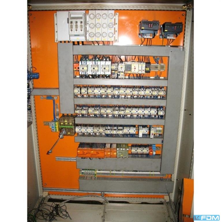Krupp PST-A 160 prasa transferowa zbudowana w 1980 roku. Dane techniczne prasy KRUPP PST-A 160: - ciśnienie nominalne: 160 ton - stopień siły cięcia 1: 400 KN - siła między stojakami: 1200 KN - liczba etapów roboczych, w tym etap cięcia: 11 - odległość między stojakami: 200 mm - skok suwaka: 210 mm - głębokość rysunku: 70 mm - zakres skoków, nieskończenie regulowany: 15-75 / min. - zakres produkcji skoków z powtarzalnością jego ustawienia: 25-75 / min. - liczba ruchów aktuacyjnych: 15-25 / min. - użyteczny zasób pracy do skoku w zakresie 25-75 uderzeń na minutę. : 20 000 J - maksymalne obciążenie na jednym etapie: 500 KN - maksymalne obciążenie jednego kroku za pomocą płytek: 630 KN - maksymalna szerokość taśmy: około 340 mm - maksymalna średnica cięcia: 120 mm - minimalna średnica wzoru: 30 mm - odległość między stojakami: 2 ...