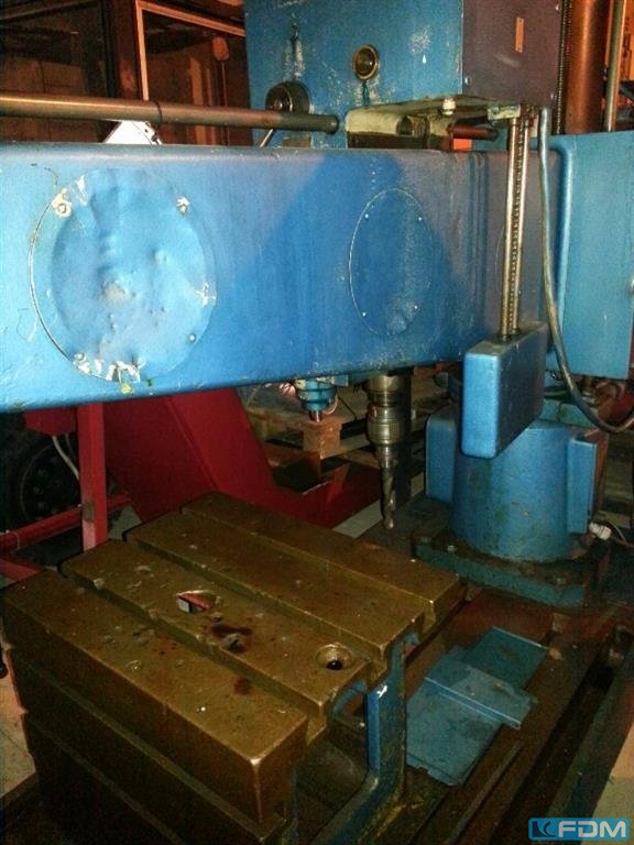 Frezarka pionowa Droop & Rein typu FS130 Podróż X 2000 mm Podróż Y 1000 mm Podróż Z 1000 mm Wrzeciono SA 50 Czułe wyjście wrzeciona: 200 mm Obrót z 31,5 do 1600 obr./min Rozmiar stołu 2400 x 1070 mm Rok budowy 1976 Głębokość gardła 950 mm Głowica przechylająca głowicę Silnik wrzeciona 22 kW Skala heidenhain 3 osie Nowy panel elektryczny w 2006 roku Napięcie 380 V Szerokość 3500 mm Głębokość 4700 mm Całkowita wysokość 4500 mm Waga 26 T