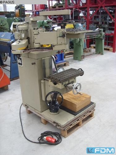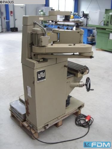 Uniwersalna maszyna do podawania narzędzi, używana uniwersalna frezarka, używana Typ FU 250 x 1000/2 Fabr. WMW Auerbach Rok budowy: 1988 Rozmiar stołu/ stół: 1130 x 255 mm Laengsmotion / longit. ruch: X 690 mm Ruch poziomy/ horiz. Ruch: Y 190 mm Ruch pionowy/ Vert. ruch : Z 360 mm Uchwyt na narzędzia/stożek: ISO 40 Prędkości wrzeciona R+L w nieskończoność/ prędkości wrzeciona (lewy/prawy) 56 - 2800 obr./min. Pre-shot bezstopniowe wszystkie osie X, Y i Z/ zasila ją cała oś 10 - 630 mm/min / 250 mm/min Moc/obciążenie napędu 3,8 kW Waga: 2 t Specyfikacja: Głowica pionowa, głowica amortyzatorna