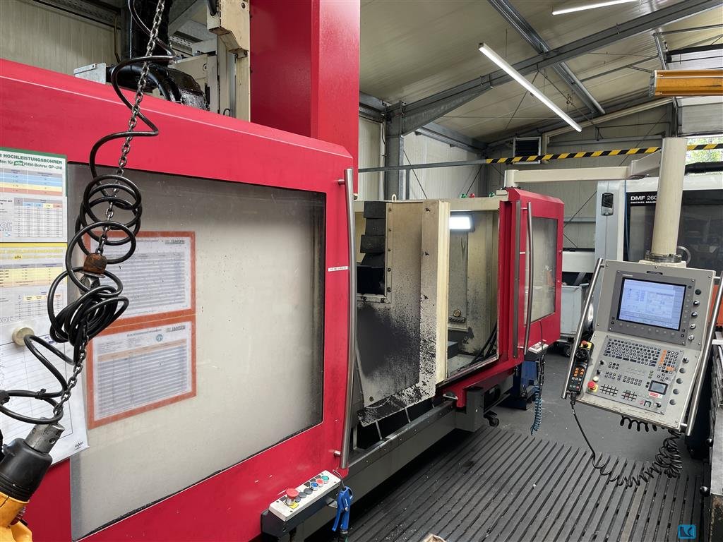 Sterowanie: Heidenhain iTNC 530 Podróż: Oś X F/H: 3.220 / 2.600 mm Oś Y 800 mm + 65 mm Oś Z F/H 850 / 1.000 mm Rowki teowe 7 sztuk Mocowanie: SK 40 Magazyn narzędzi: 100 – komora Prędkość obrotowa wrzeciona: 50 - 12 000 obr./min Sprzęt - Chłodzenie wewnętrzne (IKZ) 20 bar - Filtr taśmowy płynu chłodzącego 1250 l -Przenośnik - System sterowania narzędziami laserowymi TM200 - Pistolet do płukania - Elektrostatyczne filtry powietrza wywiewanego - Elektroniczne pokrętło ręczne -Partycja - 2x ssanie LTA - Przygotowany pod 5. oś