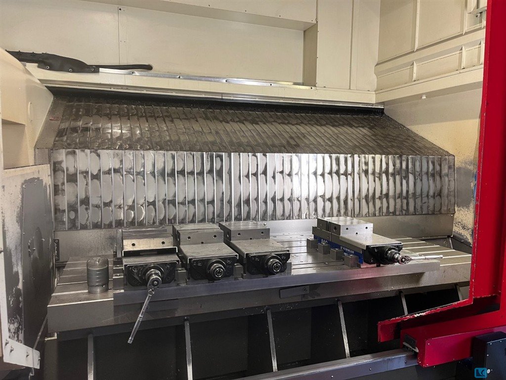 5-osiowe centrum obróbki Producent: Hedelius Type Acura 85 Control Heidenhain iTNC640 Rok budowy 2022 Powierzchnia zacisku 850 x 750 Maksymalny ciężar stołu 1000 kg Podróż X/Y/Z 900/850/700 Maksymalna prędkość 18 000 obr./min Uchwyt na narzędzia HSK63 Zmieniacz narzędzi z 80 przedziałami IKZ 70bar Przenośnik chipowy Elektroniczne koło ręczne Hydrauliczny system zaciskania punktu zerowego pssend również magnetyczną płytę o wymiarach 600 x 800 mm, dostosowaną do systemu zaciskowego NP. Hydrauliczny imadło Schunk 2 x zaciski centralne Schunk 60 HSK 63 Nagrania Maszyna pochodzi z likwidacji firmy i jest w idealnym, TOP stanie. Wszystkie informacje bez gwarancji