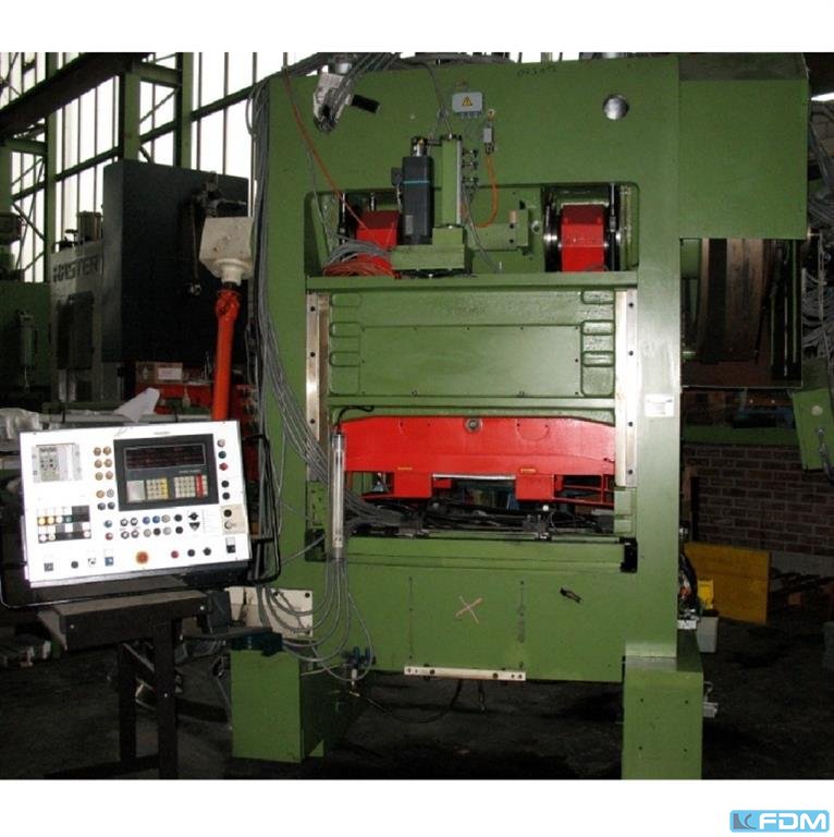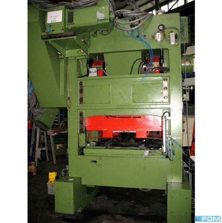 Dane techniczne: - Siła ściskana 100 t - Przedłużenie 320 mm - Szerokość w podstawce poniżej prowadnicy 400 mm - Rozmiar tabeli ok. 850 x 610 mm - Otwór biegunkowy w stole wyruszył 335 / 300 mm - grubość płyty zaciskowej stołu 90 mm - gr. Wysokość montażu około 300 mm - Powierzchnia wtyczki 600 x 335 mm - Regulacja wysokości wtyczki 80 mm - Regulacja skoku 10 - 130 mm - Skok spalin w tłuczku 32 mm - Liczba skoków ciągły przebieg ok. 56 /min - Napęd 400 V / 11 kW - Zapotrzebowanie na przestrzeń ok. W 1900 x H 2800 x D 2200 mm - Waga ok. 9000 kg z: - urządzenie m.in. - Sprzęgło hneumatycznie sterowane pneumatycznie - LUTEX Dodatkowy układ hamulcowy - Centralne smarowanie