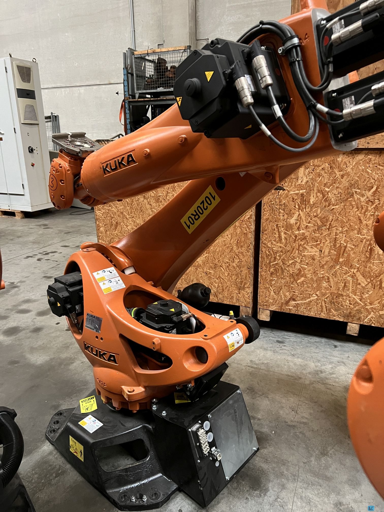 Cela z robotem typu pick and place Model: KUKA 3 D1200 HM/SEL Ilość: 24 cele Rok produkcji: 2021 Udźwig: 3 kg Zasięg: 1200 mm Sterowanie: KR C5 KSP