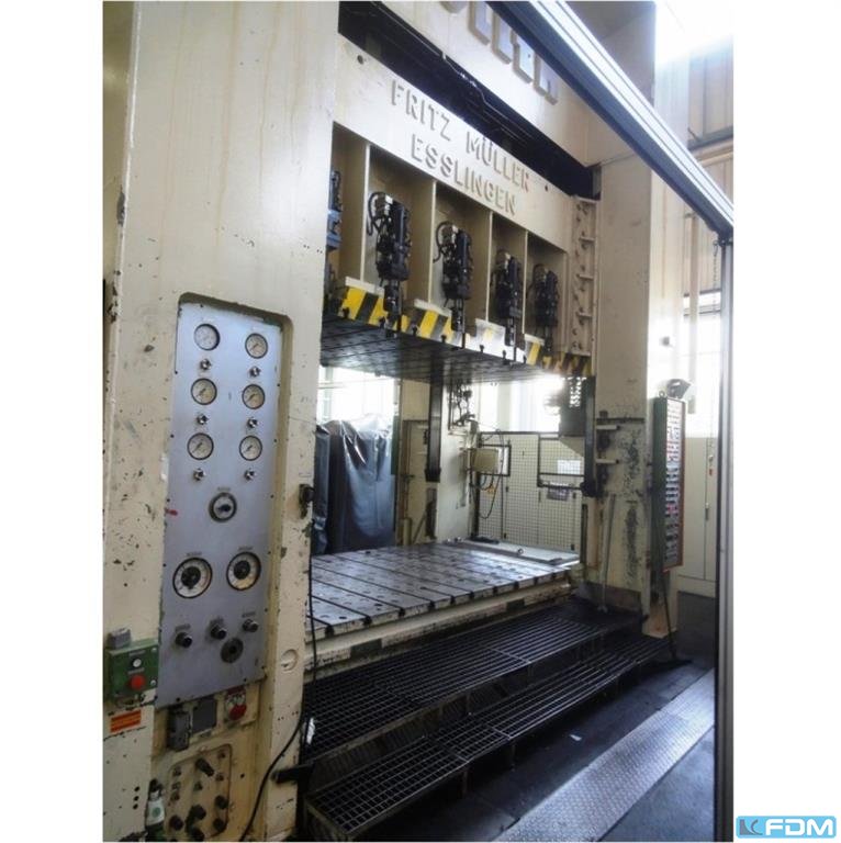 hydrauliczna jednostanowa prasa rysunkowa Müller model CLZ.100.1.34, Y.O.M. 1994, dobry stan, z uVV, Siemens S7 sterowanie ekranem, przedłużenie 400 mm, wysokość instalacji 800 mm, powierzchnia stołu 800 x 730 mm, skok 600 mm, poduszka rysunkowa 40 do., pociągnięcie poduszki rysunkowej 200 mm.