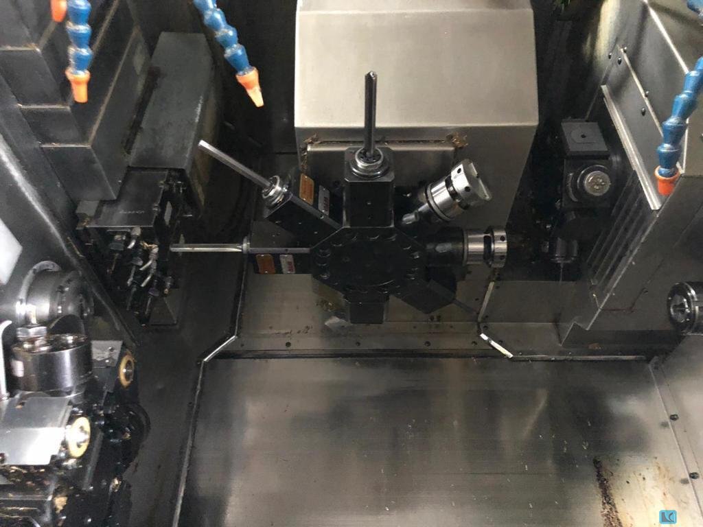 Tokarka wielozadaniowa Mori Seiki NT 1000 :::SPECYFIKACJE::: Model CNC: Mori Seiki - Wersja CNC: Mapp - Nos wrzeciona: ASA 5 - Moc wrzeciona: 11 kW - Prędkość obrotowa wrzeciona głównego: 6000 Średnica toczenia: 370mm - Średnica samocentrująca: 210mm - Przejście pręta: 42mm - Długość toczenia: 424mm - Liczba narzędzi: 90 Uchwyt narzędziowy: CAPTO C4 Prędkość obrotowa wrzeciona: 12000 Przesuw osi X: 380 mm Przesuw osi Y: +105 -105 mm Przesuw osi Z: 460 mm Ruch obrotowy osi B: +120 -120 stopni Osie liniowe z szybkimi posuwami X Y Z: X 40 Y 40 Z 50 m/min Wysokie ciśnienie czynnika chłodniczego: tak Wartość ciśnienia: 50bar Zewnętrzny system zbiorników z filtrem: tak Liczba głowic rewolwerowych: 1 Liczba pierwszych gniazd na narzędzia rewolwerowe: 10 Liczba stałych pozycji narzędzi w pierwszej głowicy rewolwerowej: 1 ...