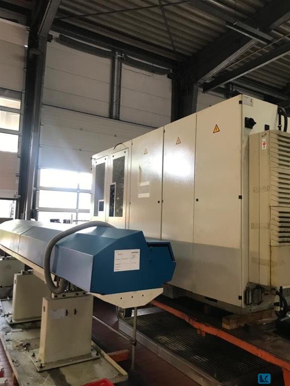 Opis: Bardzo dobrze zachowana tokarka o dużej wytrzymałości, produkcji Wohlenberg. Maszyna została częściowo wyremontowana w 2013 roku! Szczegóły: Numer artykułu PT1-1070II Rok budowy 1989 częściowo odnowiony w 2013 roku Kraj pochodzenia: Niemcy Sterowanie CNC Siemens 840 D wydłużona długość toczenia od 7 m do 11 m Geometria wieży Santer Średnica toczenia nad łożem 1.070 mm Średnica toczenia przez podporę 710 mm Długość toczenia 11.000 mm Szerokość łóżka: 710 mm 2 stopnie biegów Prędkość 3,55 - 710 obr./min. Średnica pióra 200 mm Skok pióra 350 mm Prześwit wrzeciona 128 mm Przenośnik Wiertnica wraz z prętem wytaczarskim o długości ok. 200 x 2.430 mm Płyta czołowa 1.000 mm Ramka 4 pióra 500 mm otwarta Silnik napędu głównego 71 kW wraz z dokumentacj
