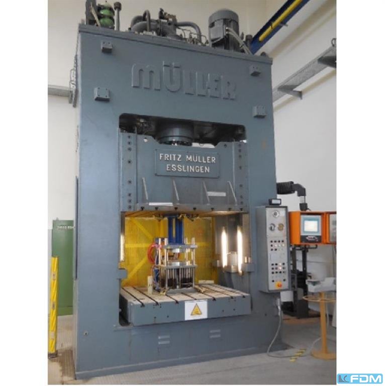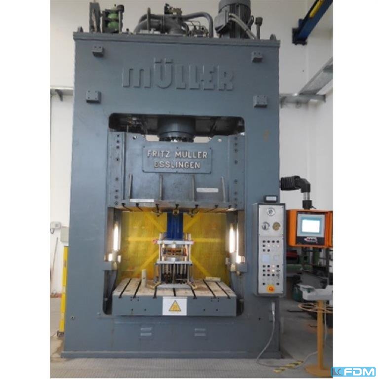 Maksymalna siła: 1600 ton Długość skoku suwaka: 400 mm Nieosiągalny kurs: 12 mm Liczba kursów suwaka na minutę: 16 Liczba pojedynczych turn-onów: 12 Zamknięta wysokość: 870 mm Regulacja: 220 mm Płyta pod forginig: -Od lewej do prawej: 1600 mm -Od przodu do tyłu: 1600 mm -Grubość: 650 mm Wymiary całkowite suwaka: 1600x1600 mm Przysłona w tabeli: 1000x1000 mm wymiary okna w policzkach: 1650x1650 mm Przebieg sztywnego popychacza w suwaku: 100 mm Siła sztywnego popychacza w tonie suwaka: 80 Główna moc silnika elektrycznego: 110 kW Przebieg poduszki pneumatycznej: 160 mm Siła wypchnięcia z pneumatycznej poduszki ton-force: 71 Poduszka hydropneumatyczna: -Kurs roboczy: 250 mm -Siła wypychania ton-force: 25 -Siła klipsa ton-force: 250 Wymiary ogólne prasy: 4670x4670x8110 mm Waga prasy: 140 ton