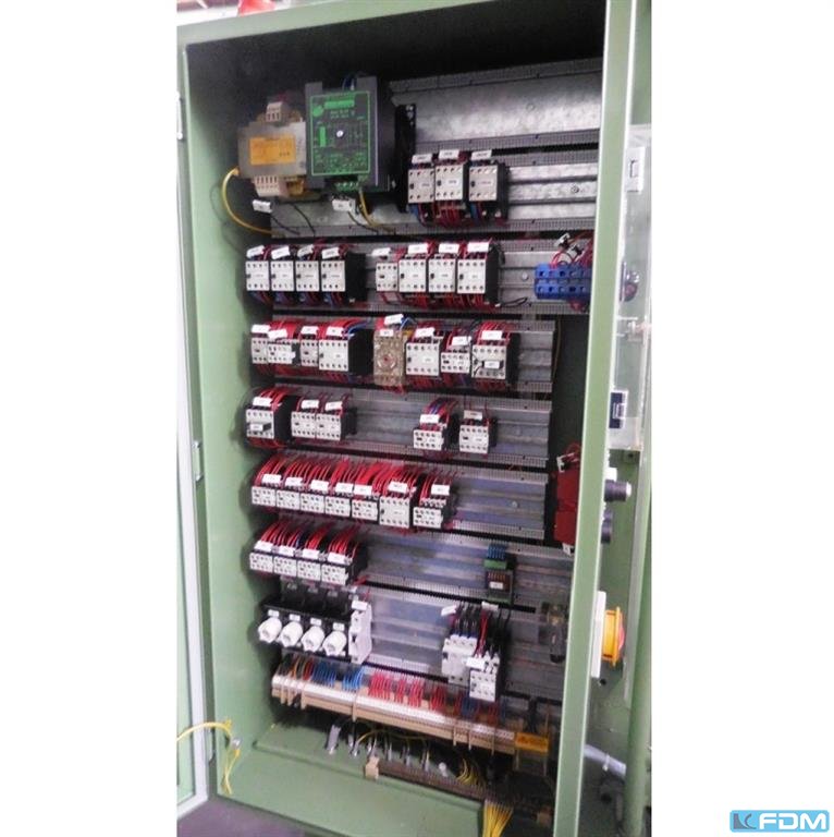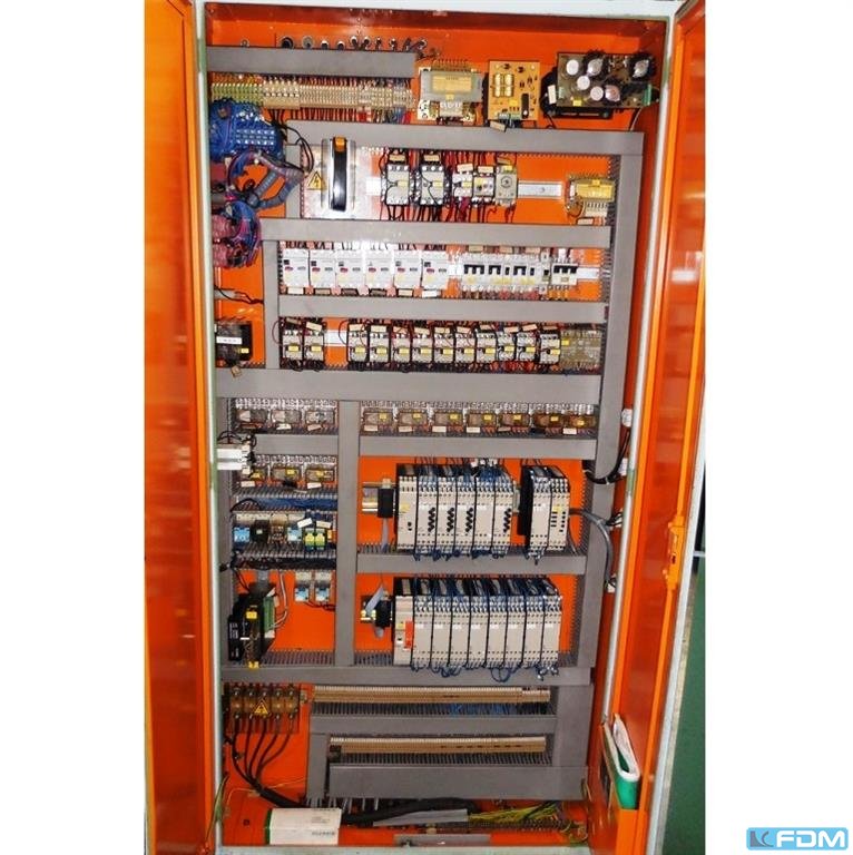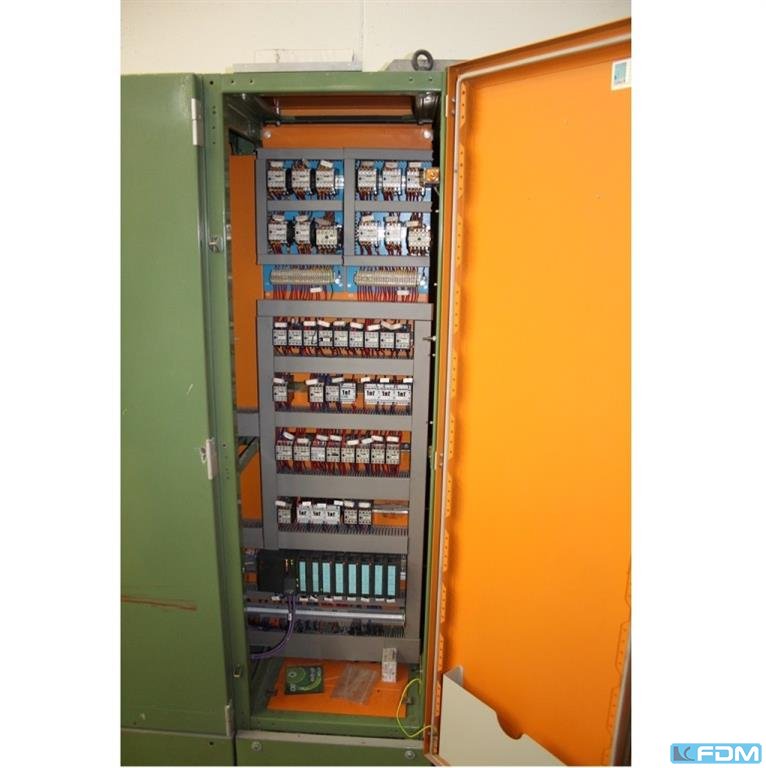 Krupp PST-A 160 prasa transferowa zbudowana w 1980 roku. Dane techniczne prasy KRUPP PST-A 160: - ciśnienie nominalne: 160 ton - stopień siły cięcia 1: 400 KN - siła między stojakami: 1200 KN - liczba etapów roboczych, w tym etap cięcia: 11 - odległość między stojakami: 200 mm - skok suwaka: 210 mm - głębokość rysunku: 70 mm - zakres skoków, nieskończenie regulowany: 15-75 / min. - zakres produkcji skoków z powtarzalnością jego ustawienia: 25-75 / min. - liczba ruchów aktuacyjnych: 15-25 / min. - użyteczny zasób pracy do skoku w zakresie 25-75 uderzeń na minutę. : 20 000 J - maksymalne obciążenie na jednym etapie: 500 KN - maksymalne obciążenie jednego kroku za pomocą płytek: 630 KN - maksymalna szerokość taśmy: około 340 mm - maksymalna średnica cięcia: 120 mm - minimalna średnica wzoru: 30 mm - odległość między stojakami: 2 ...