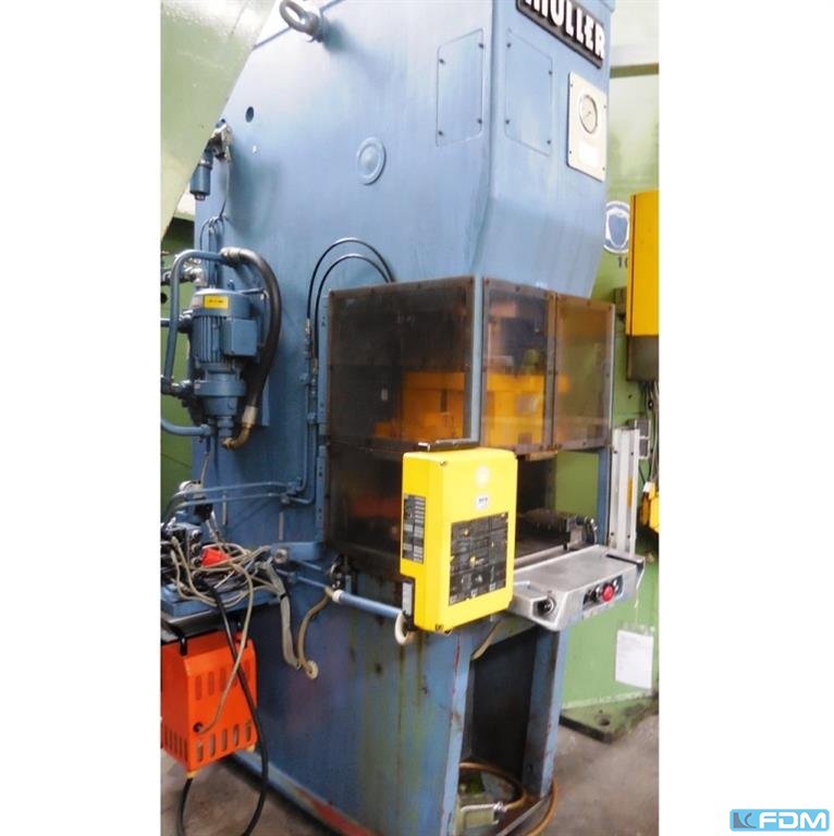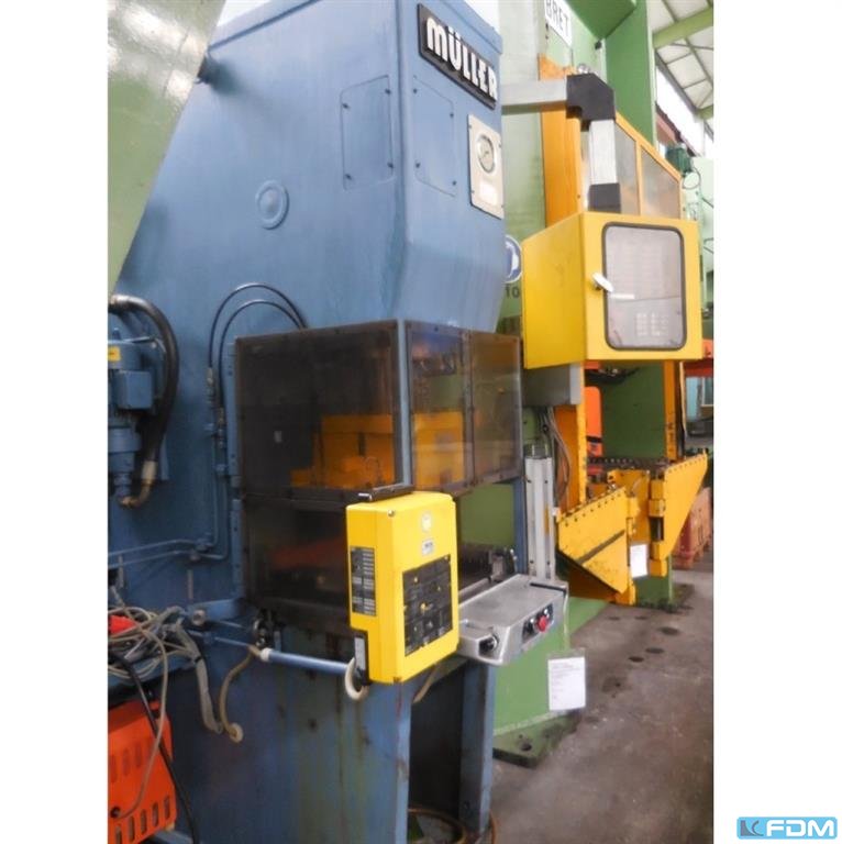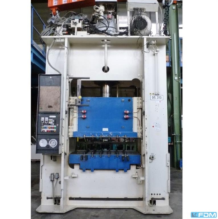 Dane techniczne: - Siła ściskana 100 t - Przedłużenie 320 mm - Szerokość w podstawce poniżej prowadnicy 400 mm - Rozmiar tabeli ok. 850 x 610 mm - Otwór biegunkowy w stole wyruszył 335 / 300 mm - grubość płyty zaciskowej stołu 90 mm - gr. Wysokość montażu około 300 mm - Powierzchnia wtyczki 600 x 335 mm - Regulacja wysokości wtyczki 80 mm - Regulacja skoku 10 - 130 mm - Skok spalin w tłuczku 32 mm - Liczba skoków ciągły przebieg ok. 56 /min - Napęd 400 V / 11 kW - Zapotrzebowanie na przestrzeń ok. W 1900 x H 2800 x D 2200 mm - Waga ok. 9000 kg z: - urządzenie m.in. - Sprzęgło hneumatycznie sterowane pneumatycznie - LUTEX Dodatkowy układ hamulcowy - Centralne smarowanie