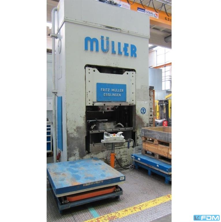 Tech. Danych Znamionowa siła nacisku 1000 kN przy maksymalnej regulacji skoku - odległość robocza 6,5 mm 1250 kN przy maksymalnej regulacji skoku - odległość robocza 3,5 mm Numer skoku do ciągłego pracy 125/83/63 Koncentratory/Min Użyteczny skok numer 50- 50 - 38 / min. Przedłużenie 320 mm, mocowanie 380 mm Regulacja skoku 10-120 mm, wykonanie uderzenia 80 mm Stosselflaeche 800 x 320 mm, uchwyt 50/ 85 Blat stołu 900 x 630 mm, otwór na blacie 230 mm, biegunka w tabeli 300/400 x 250 mm Napęd - 7,5 / 5,5 kW Wymiary 1350 x 2080 x 2780 mm, Btto 8900 kg