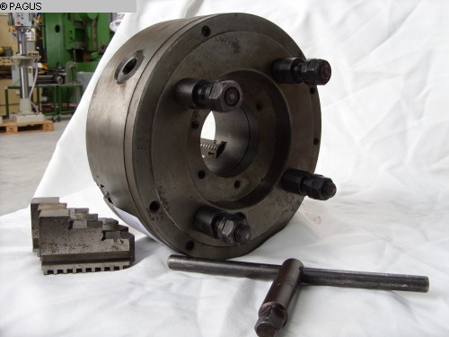 3- Uchwyt szczękowy WMW NILES DHK 200x3 Ø zewnętrzna: 200 mm Kołnierz: 155 mm Ø otworu: 60 mm Koło: 175 mm Wysokość ze szczękami: 125 mm Numer uchwytu: 507 Wymiary: 200 x 200 x 125 mm