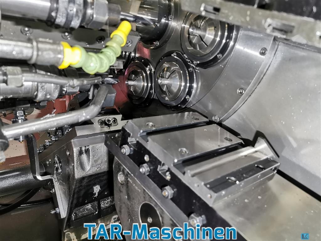 Liczba wrzecion 8 Sterownik Siemens 810D Średnica uchwytu: 130 mm Maksymalna średnica części: 135 mm Skok całkowity: 125 mm Długość robocza: 100 mm