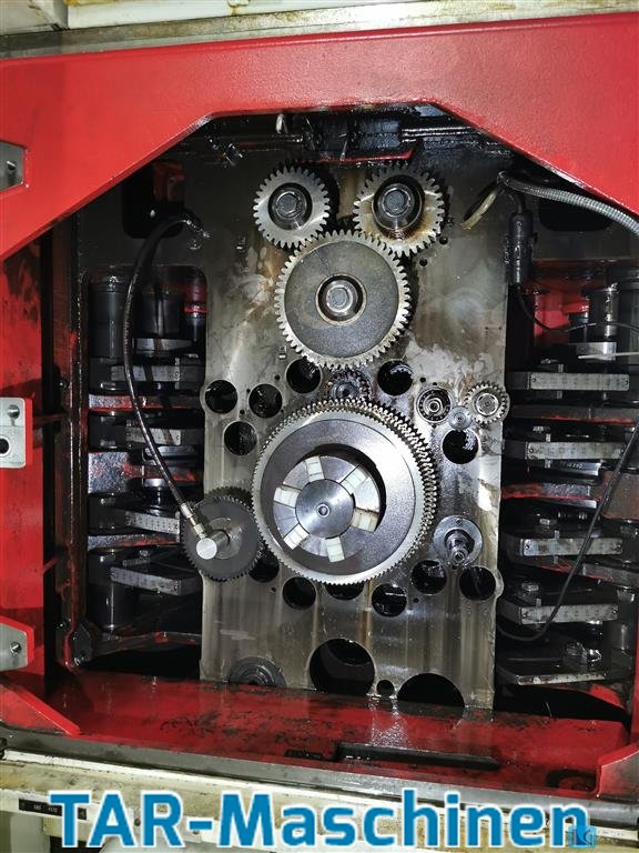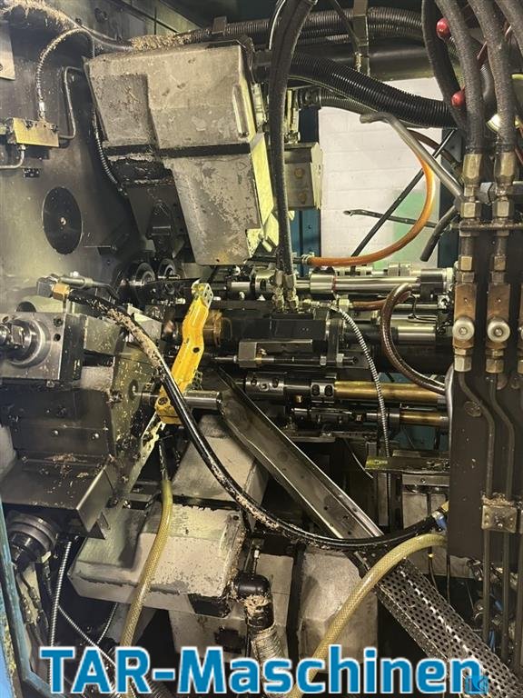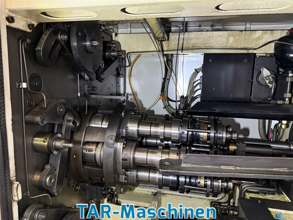 Maszyna obrotowa 8-wrzecionowa Rok budowy z 1989 roku; serie 25 Odnowiony w 2012 roku • Nowa elektryka • Nowe łożyska • Wycieczki z przewodnikiem • Przesuw kazyczny CNC w pozycji 7 • Konfiguracja zatrzymania wrzeciona • Prowadnica pręta materiałowego • Przenośnik wiórowy • Pozycja wrzeciona podbierania 8 • Urządzenie kalibracyjne • Różne uchwyty narzędziowe • Różne krzywe