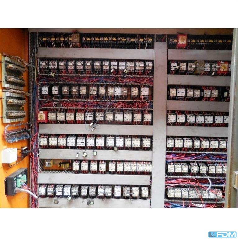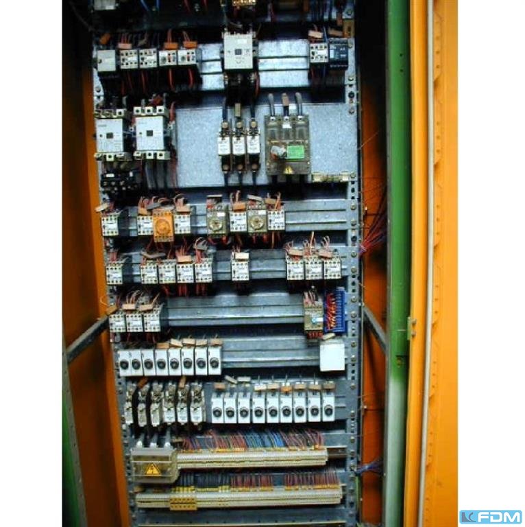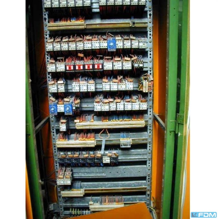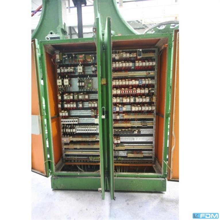 Krupp PST-A 160 prasa transferowa zbudowana w 1980 roku. Dane techniczne prasy KRUPP PST-A 160: - ciśnienie nominalne: 160 ton - stopień siły cięcia 1: 400 KN - siła między stojakami: 1200 KN - liczba etapów roboczych, w tym etap cięcia: 11 - odległość między stojakami: 200 mm - skok suwaka: 210 mm - głębokość rysunku: 70 mm - zakres skoków, nieskończenie regulowany: 15-75 / min. - zakres produkcji skoków z powtarzalnością jego ustawienia: 25-75 / min. - liczba ruchów aktuacyjnych: 15-25 / min. - użyteczny zasób pracy do skoku w zakresie 25-75 uderzeń na minutę. : 20 000 J - maksymalne obciążenie na jednym etapie: 500 KN - maksymalne obciążenie jednego kroku za pomocą płytek: 630 KN - maksymalna szerokość taśmy: około 340 mm - maksymalna średnica cięcia: 120 mm - minimalna średnica wzoru: 30 mm - odległość między stojakami: 2 ...