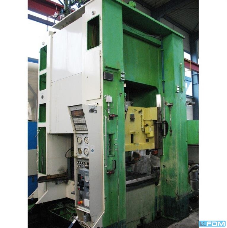 Tech. Danych Znamionowa siła nacisku 1000 kN przy maksymalnej regulacji skoku - odległość robocza 6,5 mm 1250 kN przy maksymalnej regulacji skoku - odległość robocza 3,5 mm Numer skoku do ciągłego pracy 125/83/63 Koncentratory/Min Użyteczny skok numer 50- 50 - 38 / min. Przedłużenie 320 mm, mocowanie 380 mm Regulacja skoku 10-120 mm, wykonanie uderzenia 80 mm Stosselflaeche 800 x 320 mm, uchwyt 50/ 85 Blat stołu 900 x 630 mm, otwór na blacie 230 mm, biegunka w tabeli 300/400 x 250 mm Napęd - 7,5 / 5,5 kW Wymiary 1350 x 2080 x 2780 mm, Btto 8900 kg