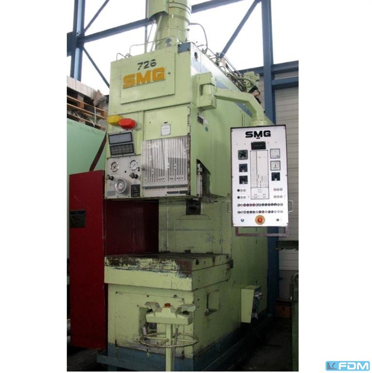 Używana prasa formierska SMG HZPUX 350/200 - 1500/1300 w dobrym stanie! Główne dane techniczne: - Moc: 510 ton - Maksymalna rozpiętość z zamkiem: 1460 mm - Minimalne oświetlenie z zamkiem: 520 mm - Maksymalna rozpiętość bez zamku: 2160 mm - Minimalne światło bez zamku: 1220 mm