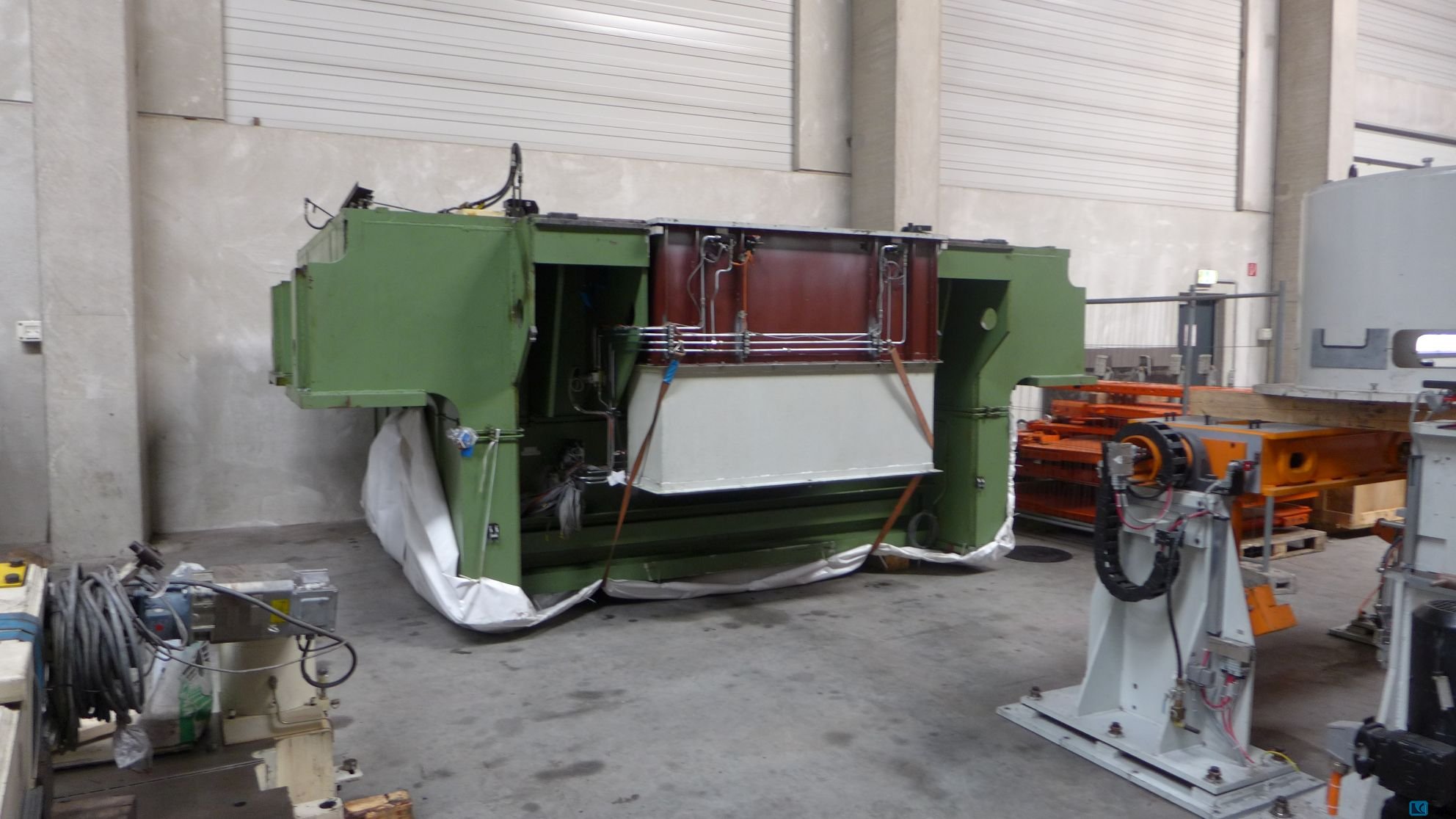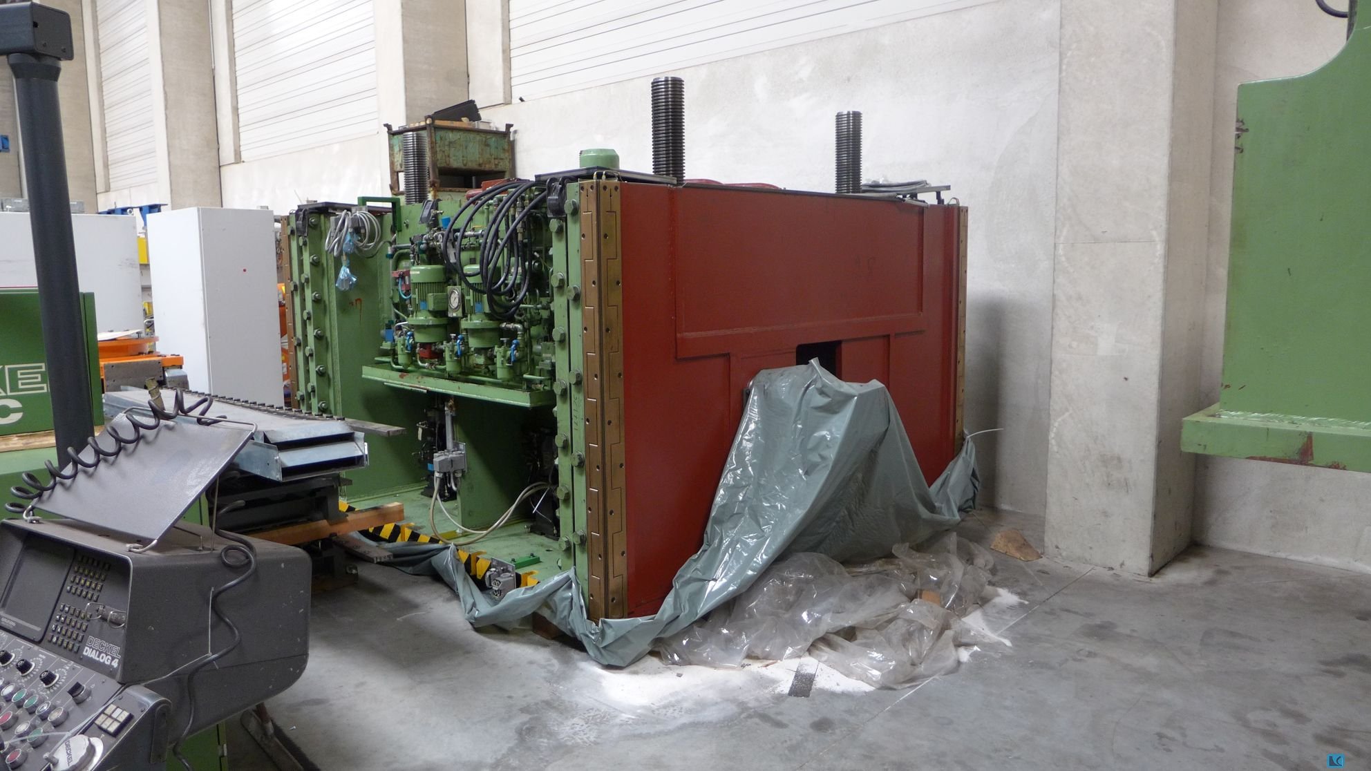 Siła nacisku: 3150kN, wymiary stołu X/Y: 2500mm/1600mm, skok (stały): 280mm, szybkość skoku: 20-80strokes/min, waga: ok. 68000kg. W tym linia transferowa i zasilająca Dreher. System sterowania jest uszkodzony. Dostępna dokumentacja. Możliwa jest wizja lokalna.