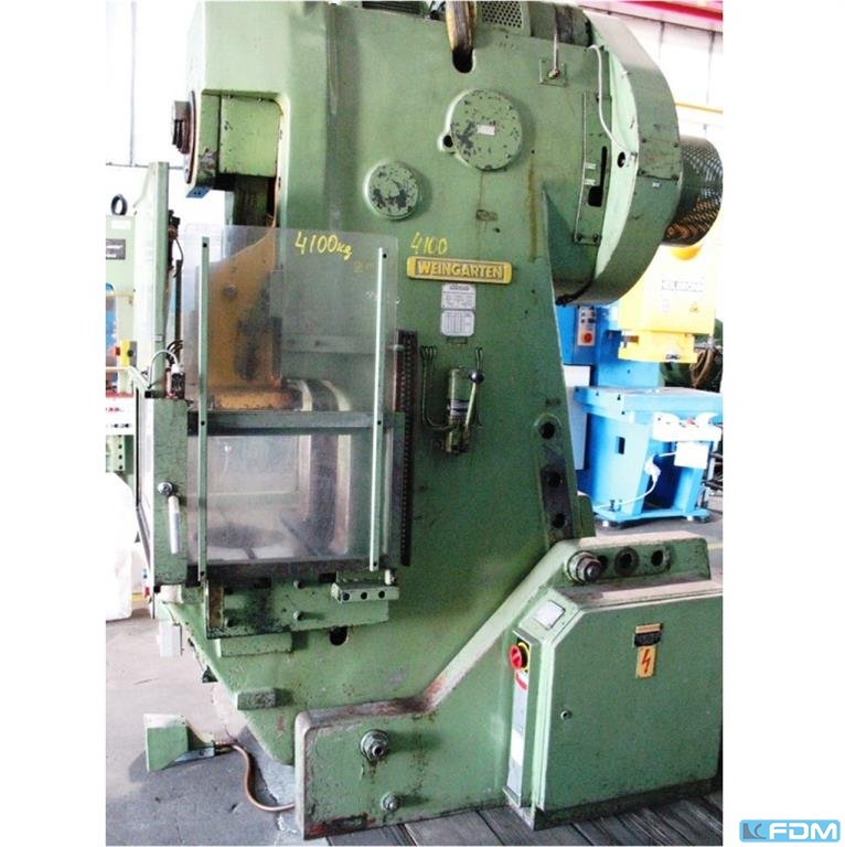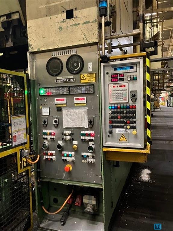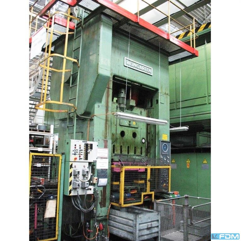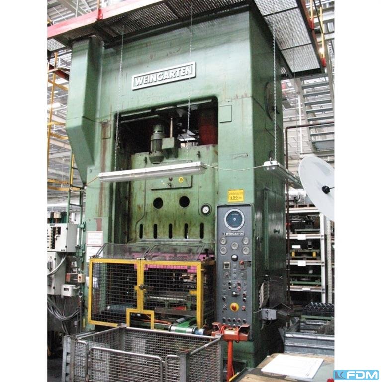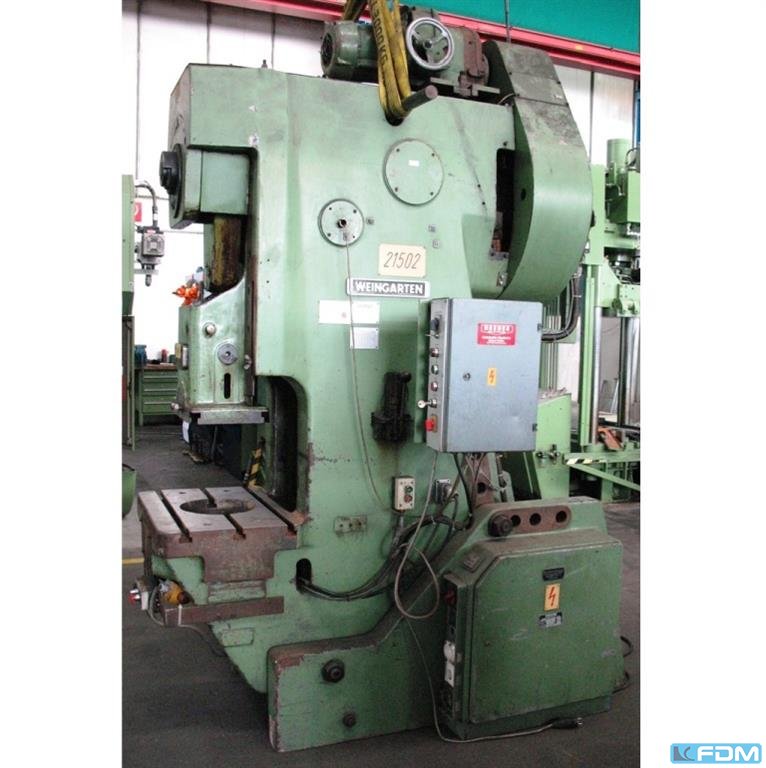 Prasa WEINGARTEN DE 200-20 zbudowana w 1975 roku w Niemczech służy do precyzyjnej obróbki detali. Sztywna konstrukcja w połączeniu z dużą siłą nacisku wynoszącą 200 ton sprawiają, że maszyna jest idealnym rozwiązaniem do masowej produkcji różnego rodzaju części. Proces precyzyjnego prasowania blach można w pełni zautomatyzować, gdy prasa WEINGARTEN zostanie doposażona w podajnik blachy. Specyfikacja techniczna prasy WEINGARTEN DE200-20 200 t - siła nacisku: 200 t - maksymalny skok suwaka: 200 mm - minimalny skok suwaka: 15 mm - maksymalna ilość skoków suwaka: 60/min - minimalna ilość skoków suwaka: 20/min - regulacja suwaka: 110 mm