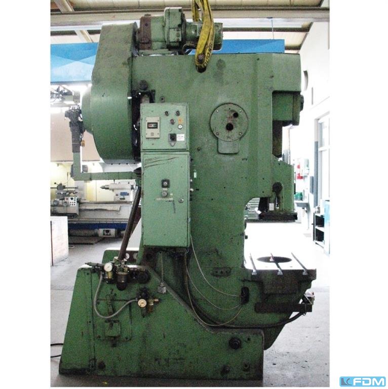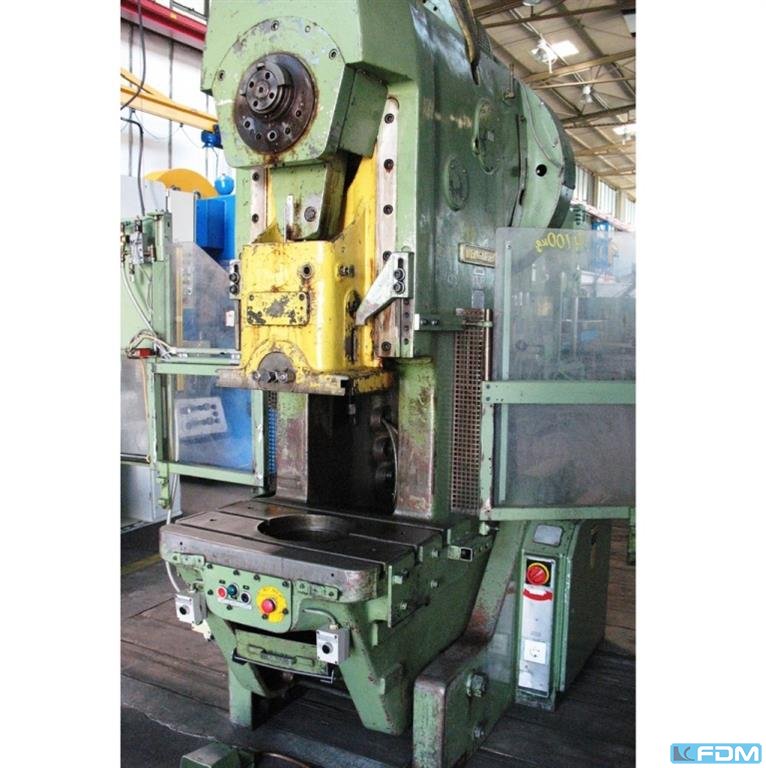 Typ/typ: N 25 Rok produkcji: 1977 Producent / marka: Weingarten Ciśnienie znamionowe: 25 t Ilość skoków: 140 / min Promień od środka do ramy: 200 mm Okno w ramie: 240 mm odległość suwaka stołu: 250 mm Regulacja skoku / regulacja skoku: 8 ... 80 mm Suwak regulacji/regulacji suwaka: 50 mm Rozmiar suwaka / powierzchnia suwaka: 355 x 220 mm Rozmiar stołu / powierzchnia łóżka: 560 x 400 mm Otwór w stole: 160 mm Moc silnika głównego:3 kW Ciężar: 2,23 t