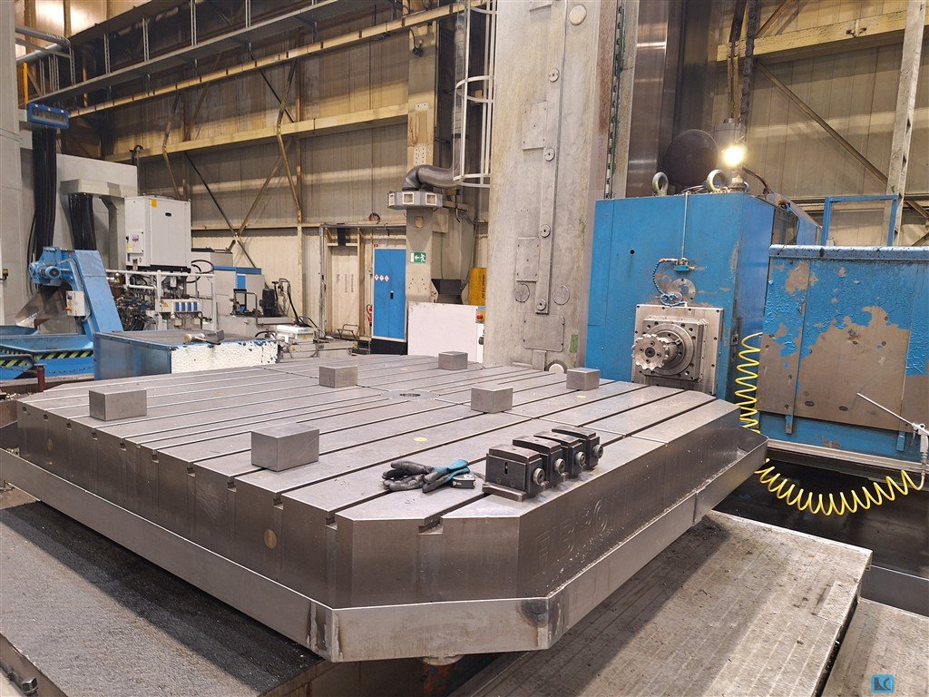 Dane techniczne: 2011 całkowicie przebudowany z nowymi napędami SIEMENS, nowe wagi HEIDENHAIN Maksymalne obciążenie stołu: 25 do. Odległość szczeliny: 180 mm Przesunięcie stołu: 1000 mm Obrót stołu oś B: 360o Powierzchnia mocowania: 1600 x 2500 mm Liczba rowków: 9