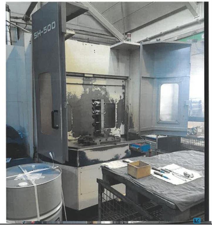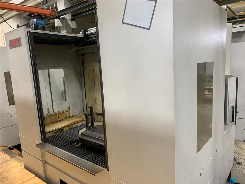 x-travel:630 mm y-travel:600 mm z-travel:650 mm control:MSC 502 (Fanuc 16) Spindle RPM:12000 1/min spindle drive:22 / 18,5 kW rapid travel x/y/z:32 m/min Pallet dimension:500x500 mm numbers of pallets:2 table load:0,5 t working diameter:max. 610 mm Number of tool station:60 BT40 max. tool length:360 mm max. tool weight:12 kg tool changing time:1,3 sec B-axis positioning (non continuous):1 total power requirement:50 kVA weight of the machine ca.:14 t dimensions of the machine ca.:3,3 x 5,8 x 3,2 m spindle load monitor:Typ C This horizontal machining center comes with a pallet changer with 2 pallets, and has the following options: ATC 60 tool stations, High pressure coolant trough spindle interface,