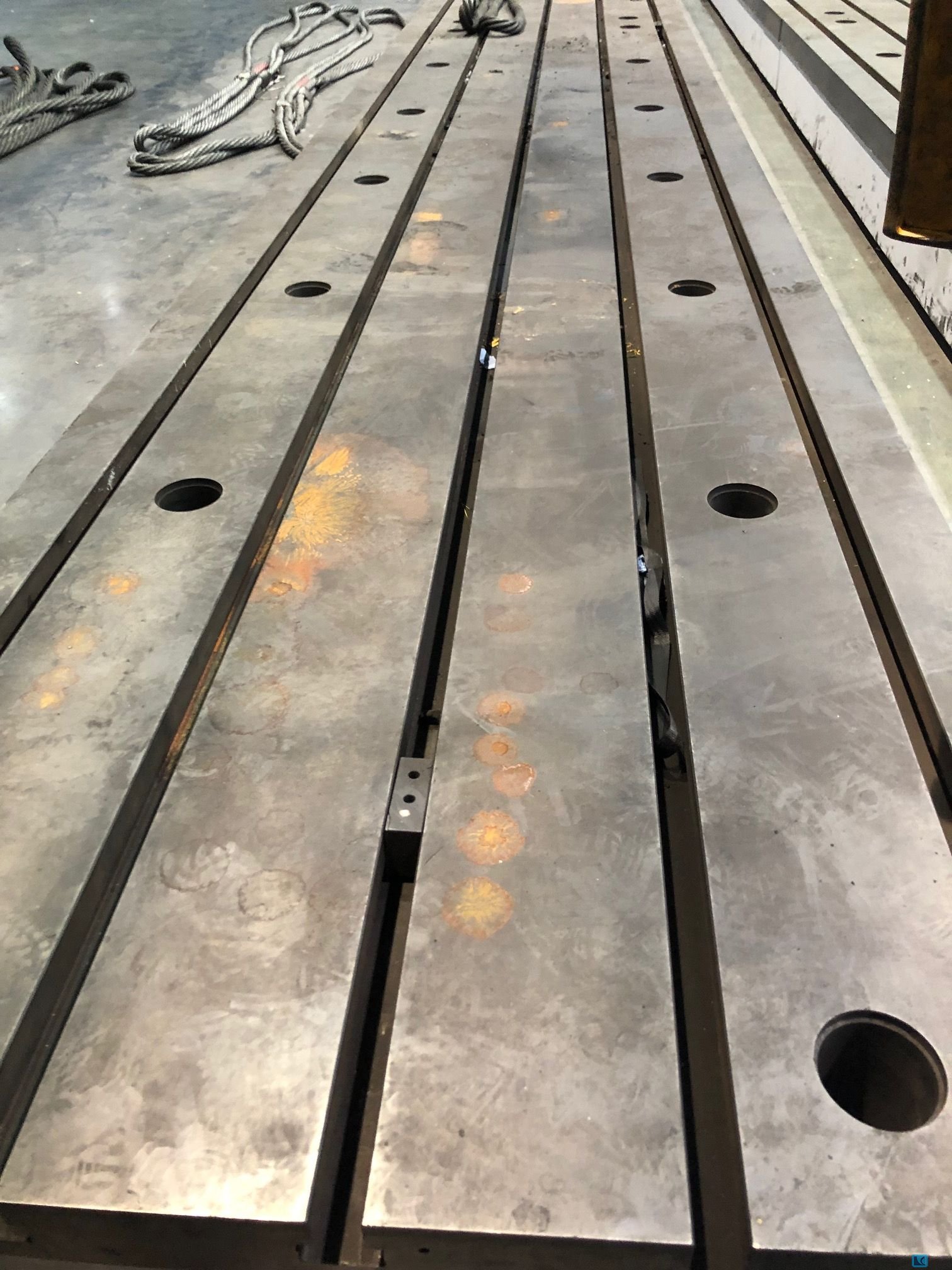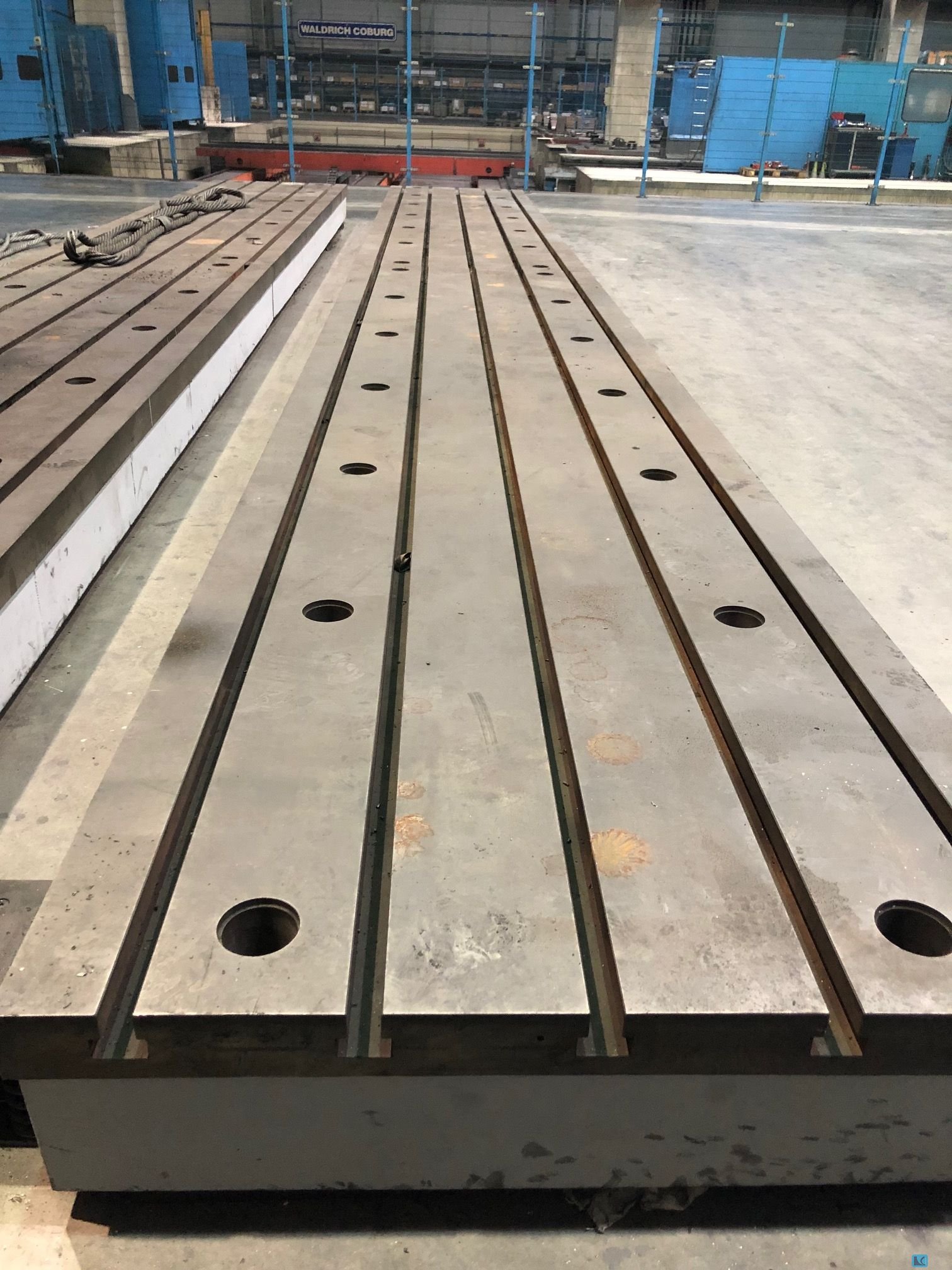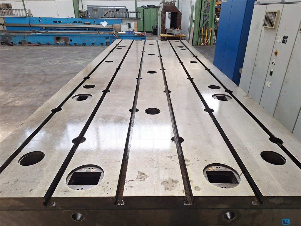 TECHNICAL SPECIFICATION:. - Fixed table length:12000 mm - . width:3000 mm - . height:350 mm - number of T-slots:10 - distance between T-slots:300 mmTechnical description :FLOOR PLATES consisting of 4 (four pieces) at segments of 6000mm length and 1500mm width