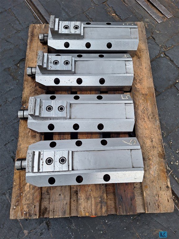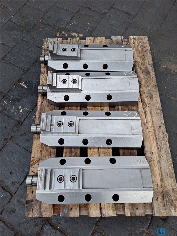 weight:400 kg8 clamping jaws each ca. 600 x 210 x 170 mm , hole dia. 22 mm, center distance ca. 170 mmwas used for clamping rings on a Vertical Turning Machine