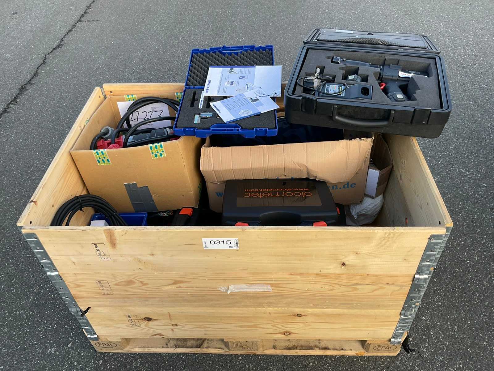 Spis składu: różne kable do zastosowań przemysłowych, przyrządy pomiarowe, koc elektryczny, 1 x bezprzewodowe hydrauliczne narzędzie prasujące marki Klauke, model LG4F. Auction-ID: A1-45495-315