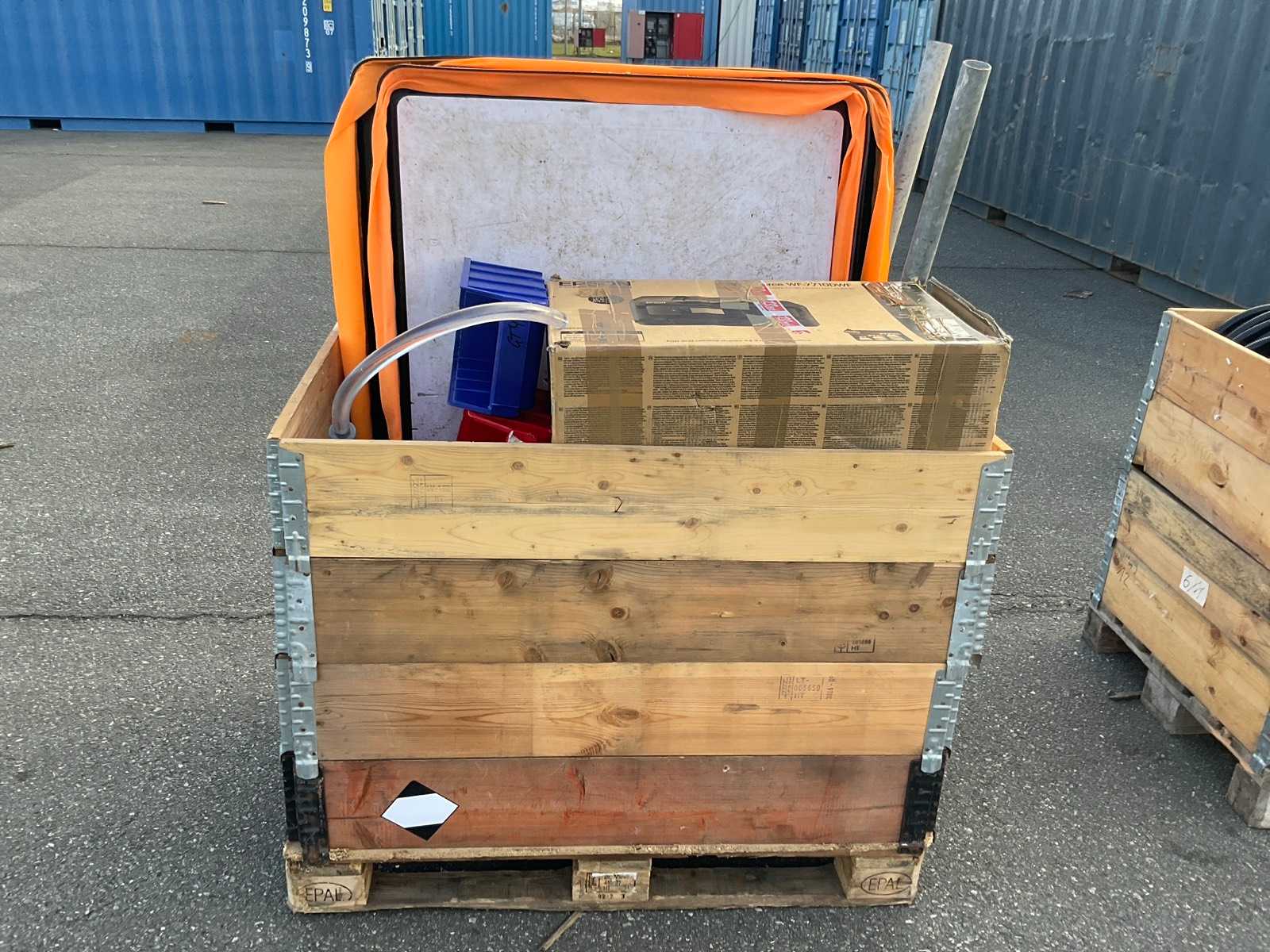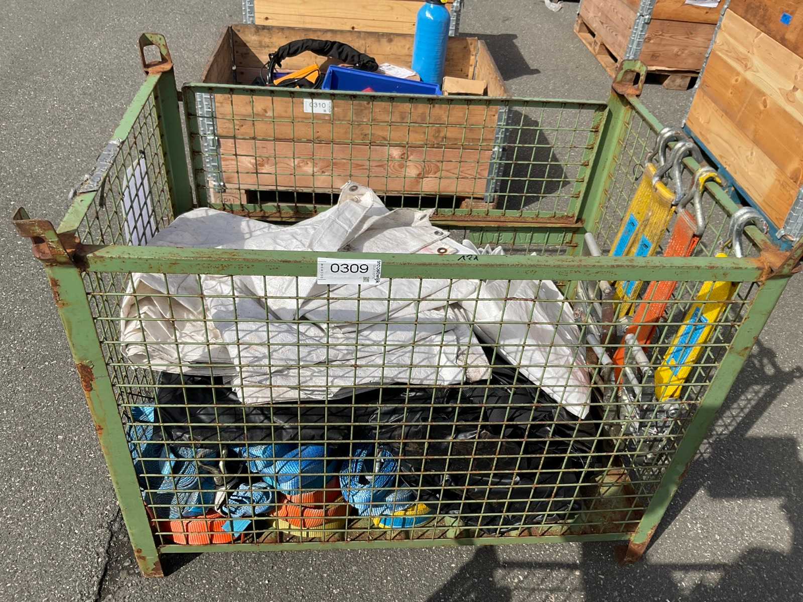 Zawartość: plandeki, osłony oraz różne pasy do wiązania i metalowe grzechotki do zabezpieczania ładunku Auction-ID: A1-45495-309