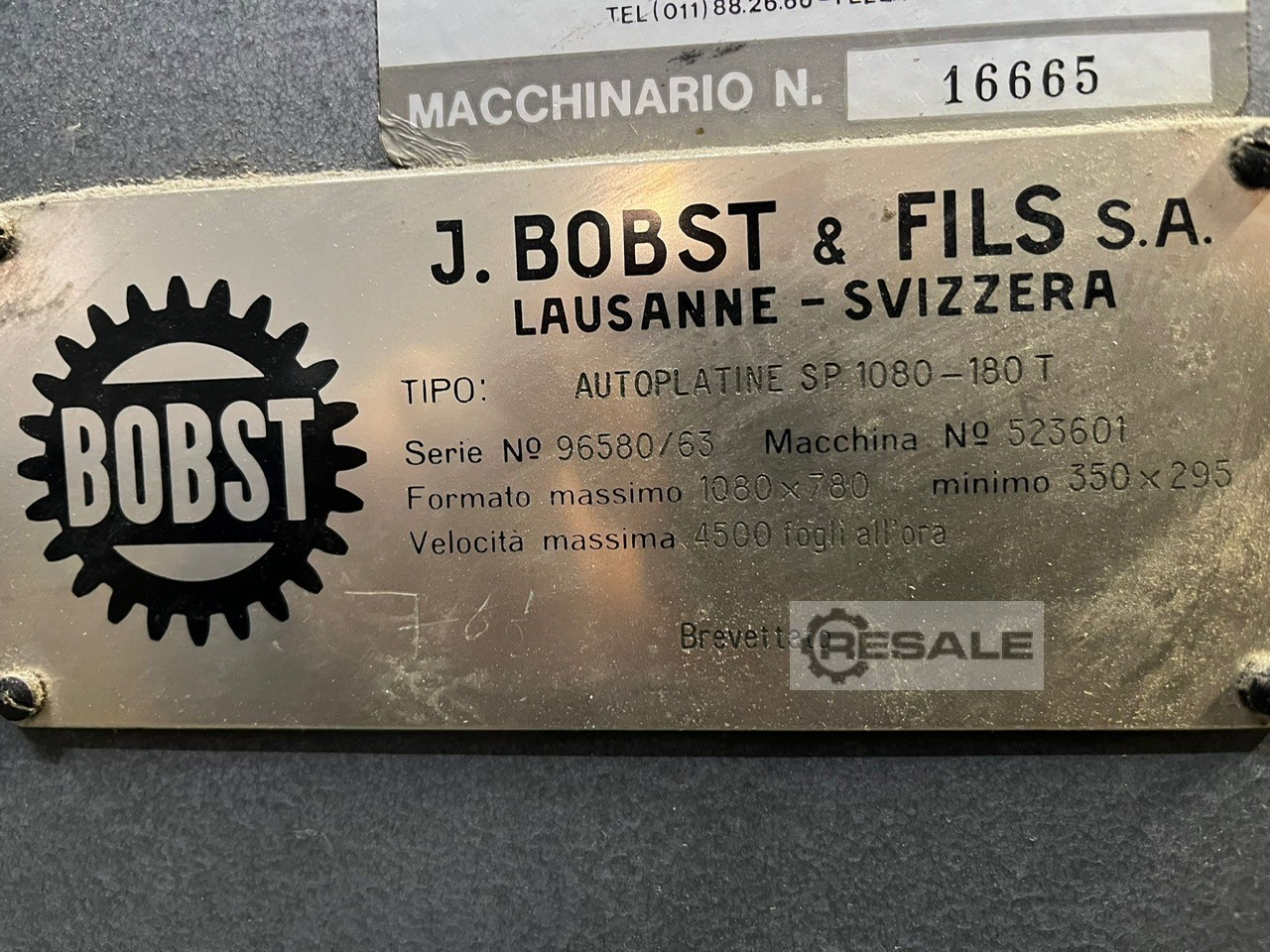 | 1960 | BOBST | Sp 1080 | 23500 eur | [Jul 2018] |