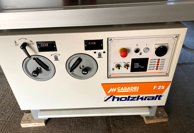 Frezarka obrotowa MARTIN T25 Bardzo dobry stan, maszyna pochodzi z małego warsztatu stolarskiego, który niestety został zamknięty Wszystko działa idealnie wszystkie łożyska i prowadnice są w porządku Rok produkcji: 1991 Na prowadnicy frezarskiej szczęka ogranicznika może być regulowana na głębokość, z precyzyjną regulacją i skalą, dzięki czemu można również wykonywać prace obróbkowe, np. na profilu klejącym, całe ogrodzenie frezujące można również całkowicie regulować na głębokość za pomocą koła regulacyjnego i wrzeciona gwintowego, co umożliwia bardzo precyzyjne i szybkie regulacje z AIGNER całkowitym zwarciem z blokadą wrzeciona za pomocą dźwigni wióry można bardzo dobrze rozładować, z dwoma dyszami ssącymi o średnicy 125 mm na stopie frezowania, a przy stole maszynowym to 100 mm Z wrzecionem o średnicy 30 mm, które można  ...